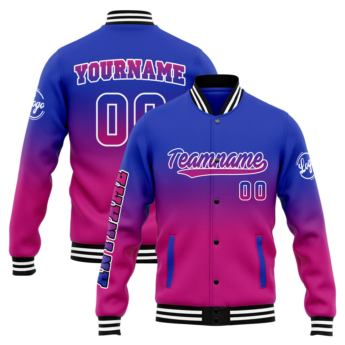 Benutzerdefinierte Verlauf Varsity-Jacke. Letterman-Jacke Royal Rose