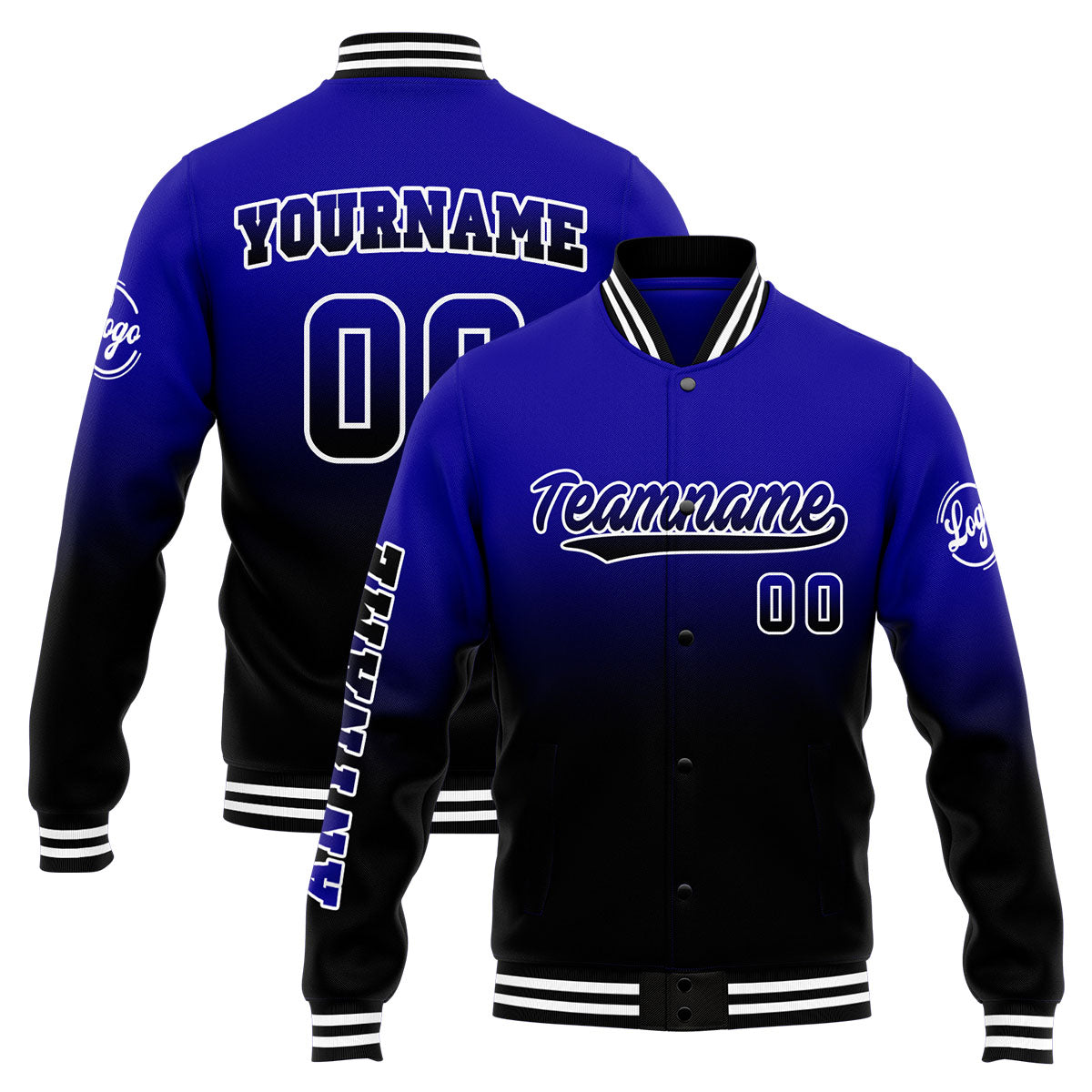 Benutzerdefinierte Verlauf Varsity-Jacke. Letterman-Jacke Royal Schwarz