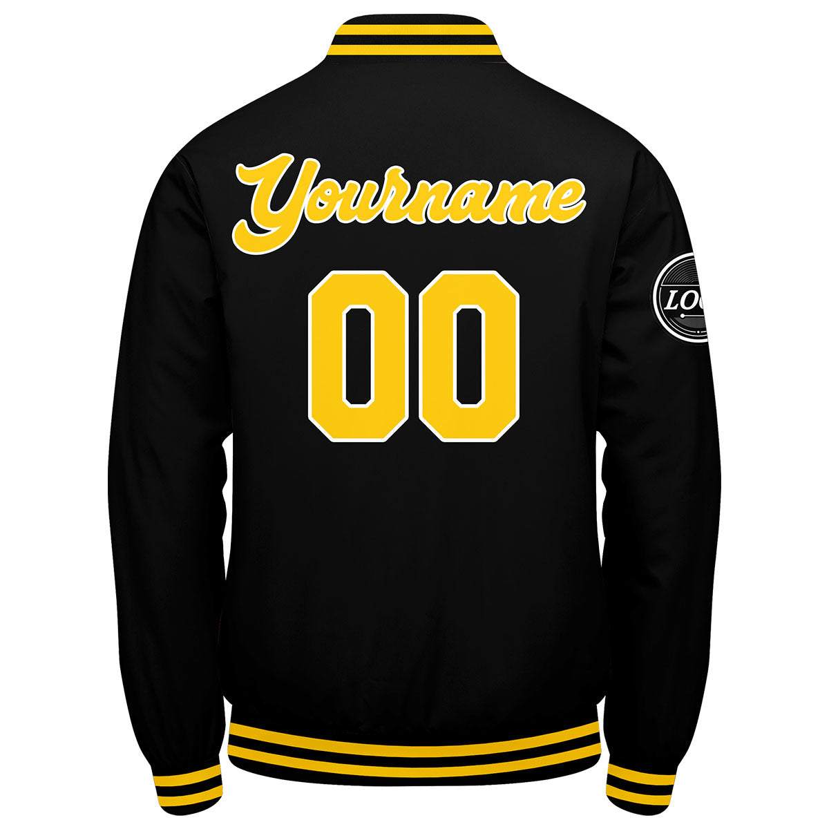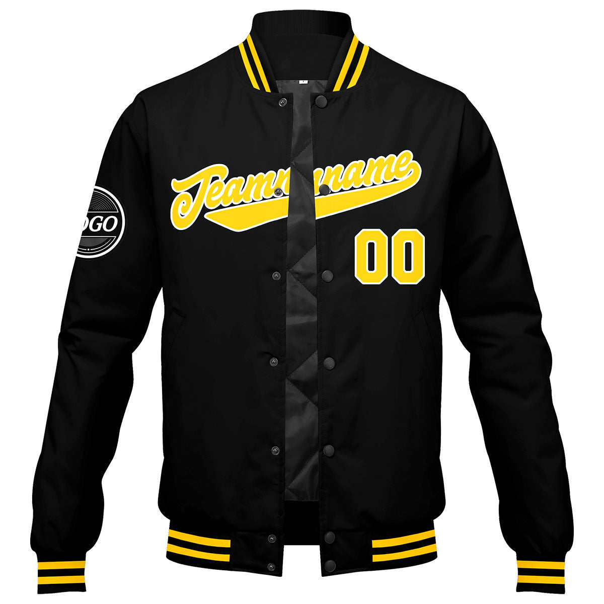 Benutzerdefinierte Verlauf Varsity-Jacke. Letterman-Jacke Schwarz Gelb