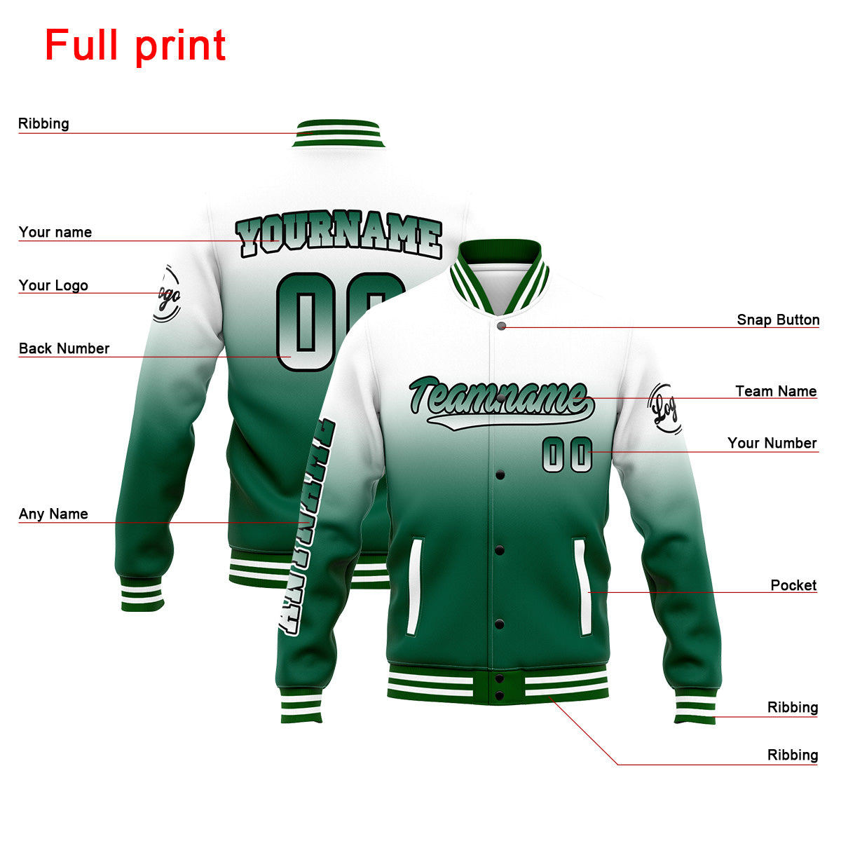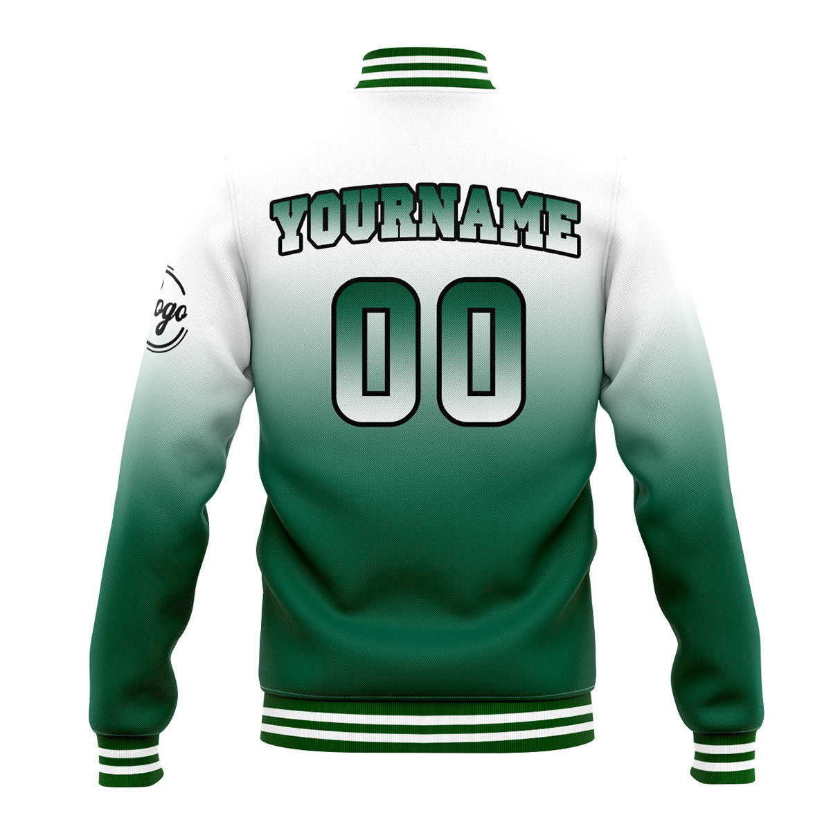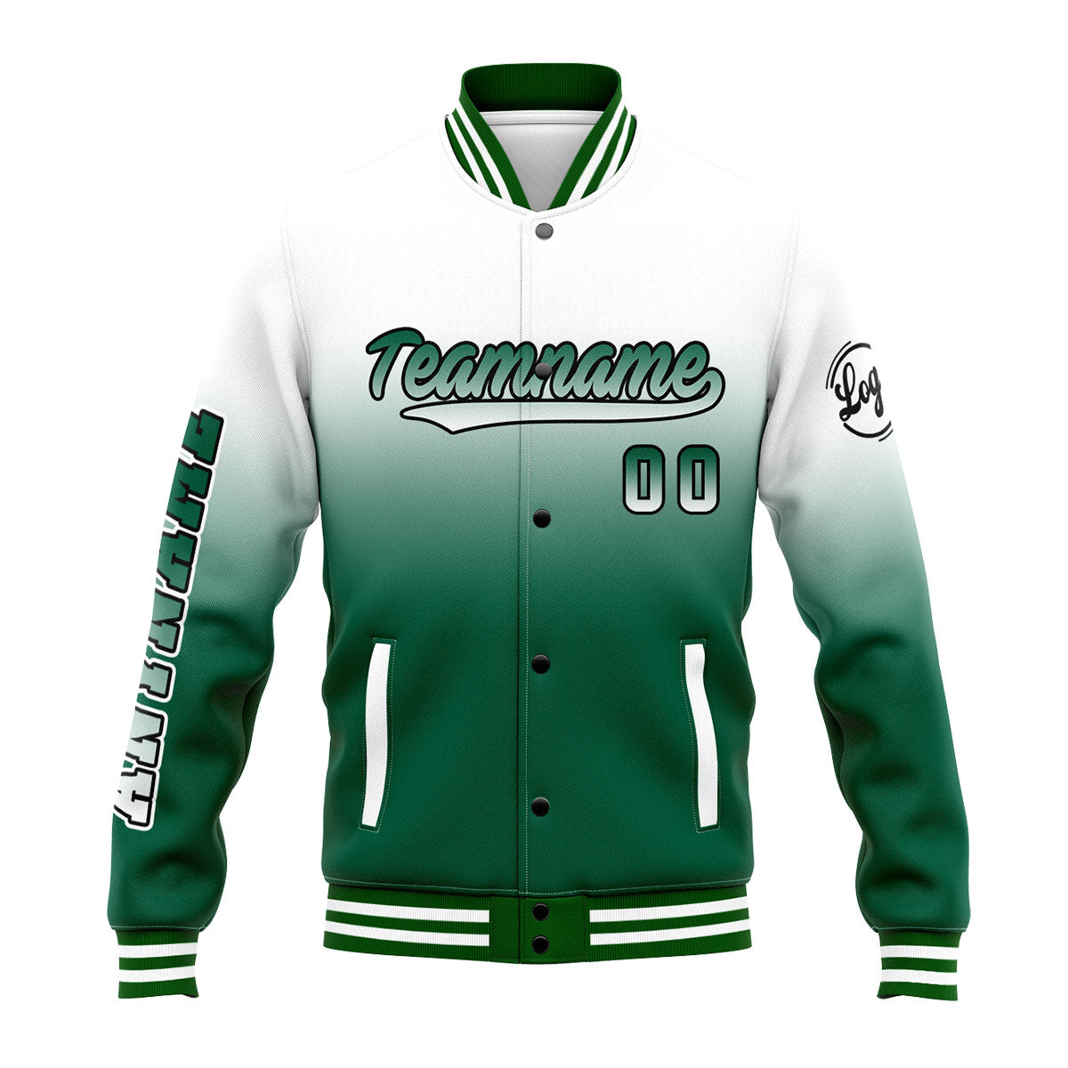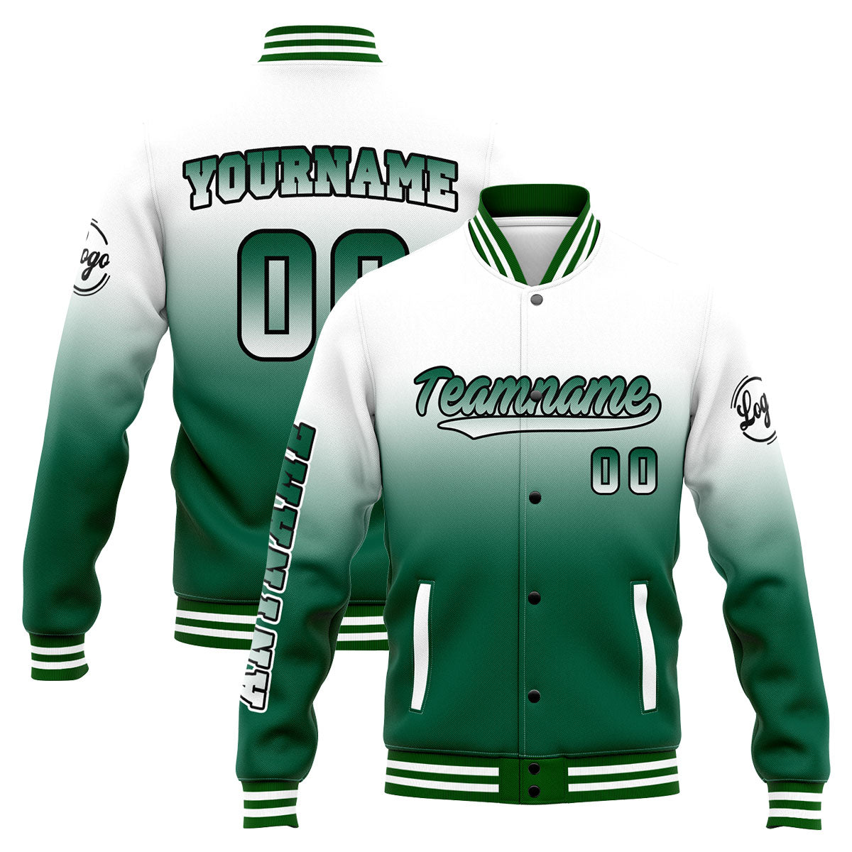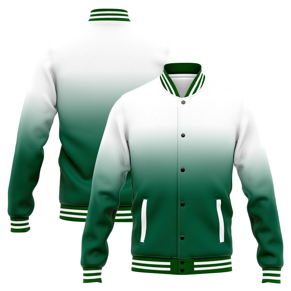 Benutzerdefinierte Verlauf Varsity-Jacke. Letterman-Jacke Weiß Grün
