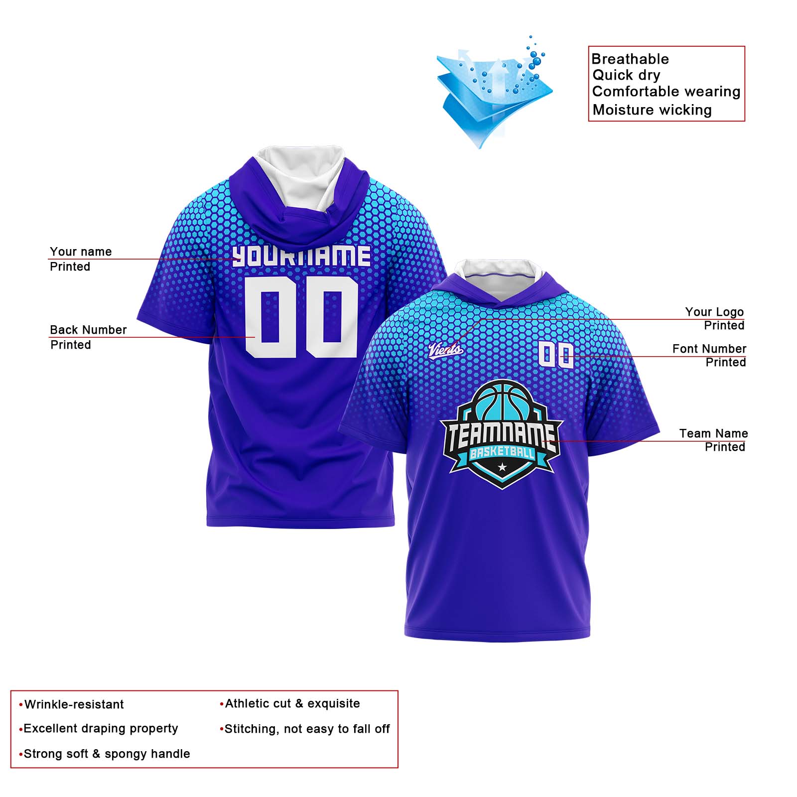 Benutzerdefinierte Violettes Licht Kurzarm-Kapuzenpullover für Männer Frauen Hemden mit Kapuzen gedruckt Name Logo
