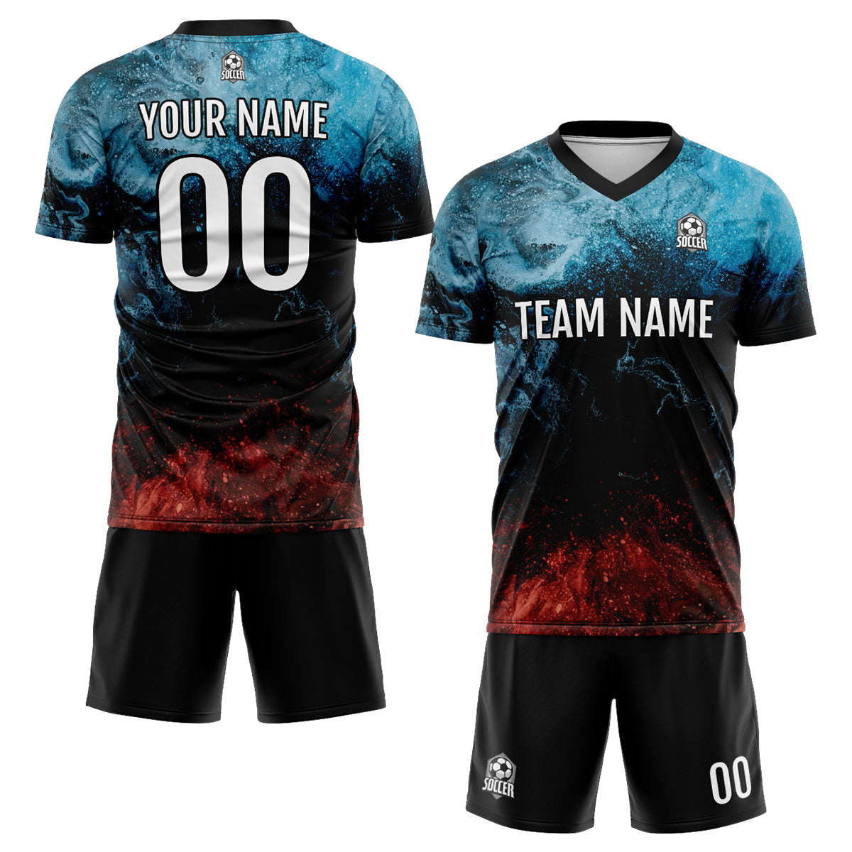 Benutzerdefinierte Wasser und Feuer Fußball Trikots für Männer Frauen Personalisierte Fußball Uniformen für Erwachsene und Kind