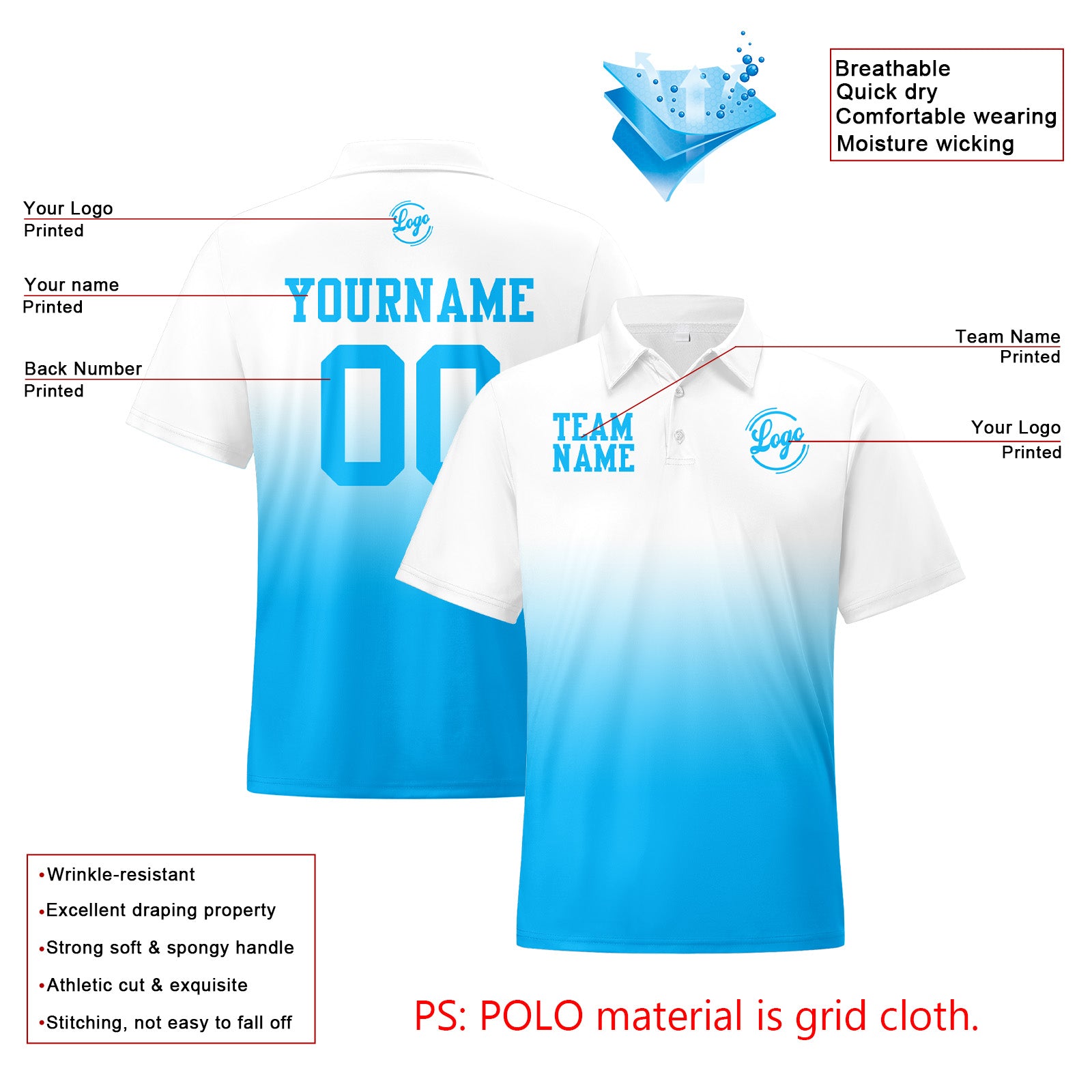 Benutzerdefinierte Weiß Blau Fußball Gradient Polo-Shirts Fügen Sie Ihr Einzigartiges hinzu Logo/Name/Nummer
