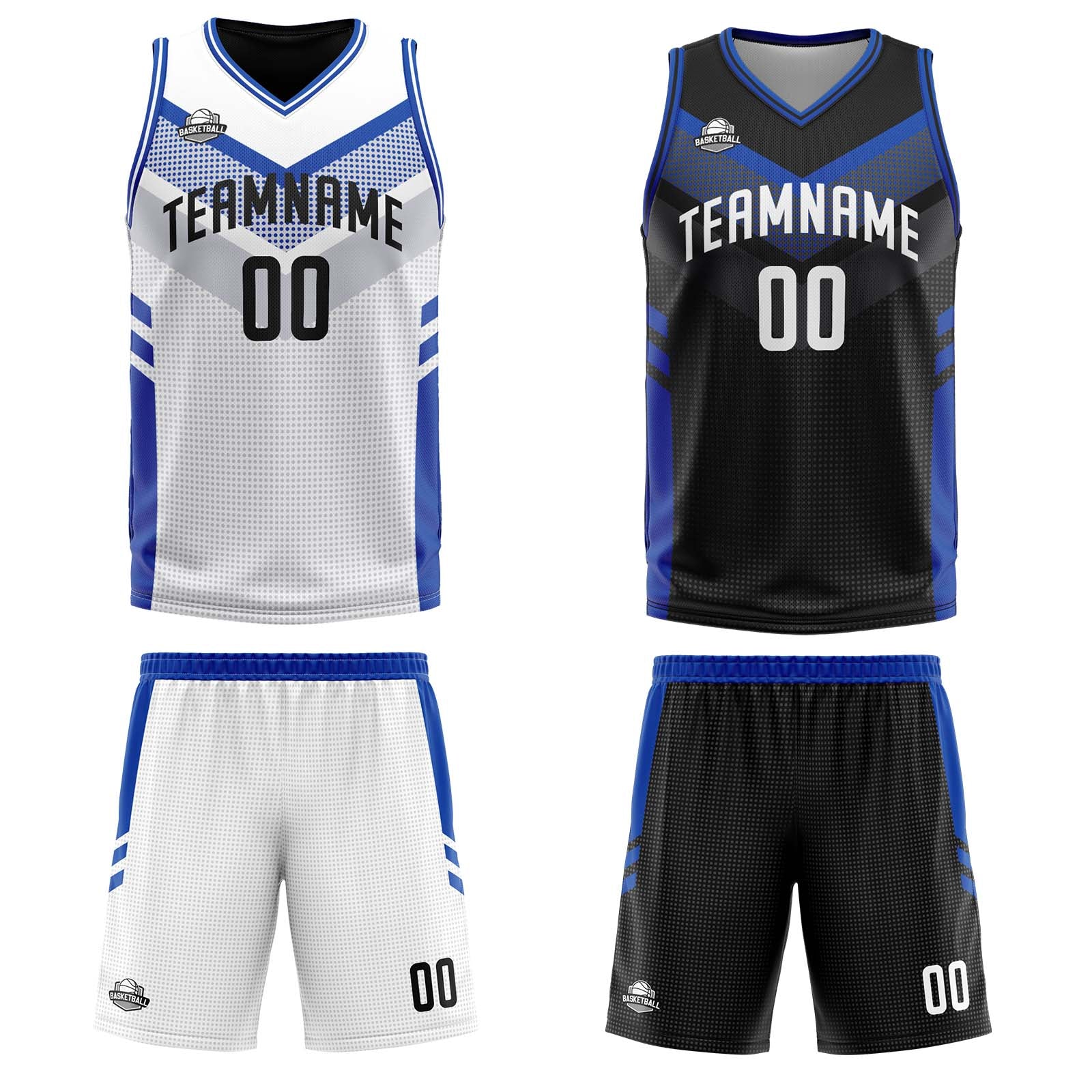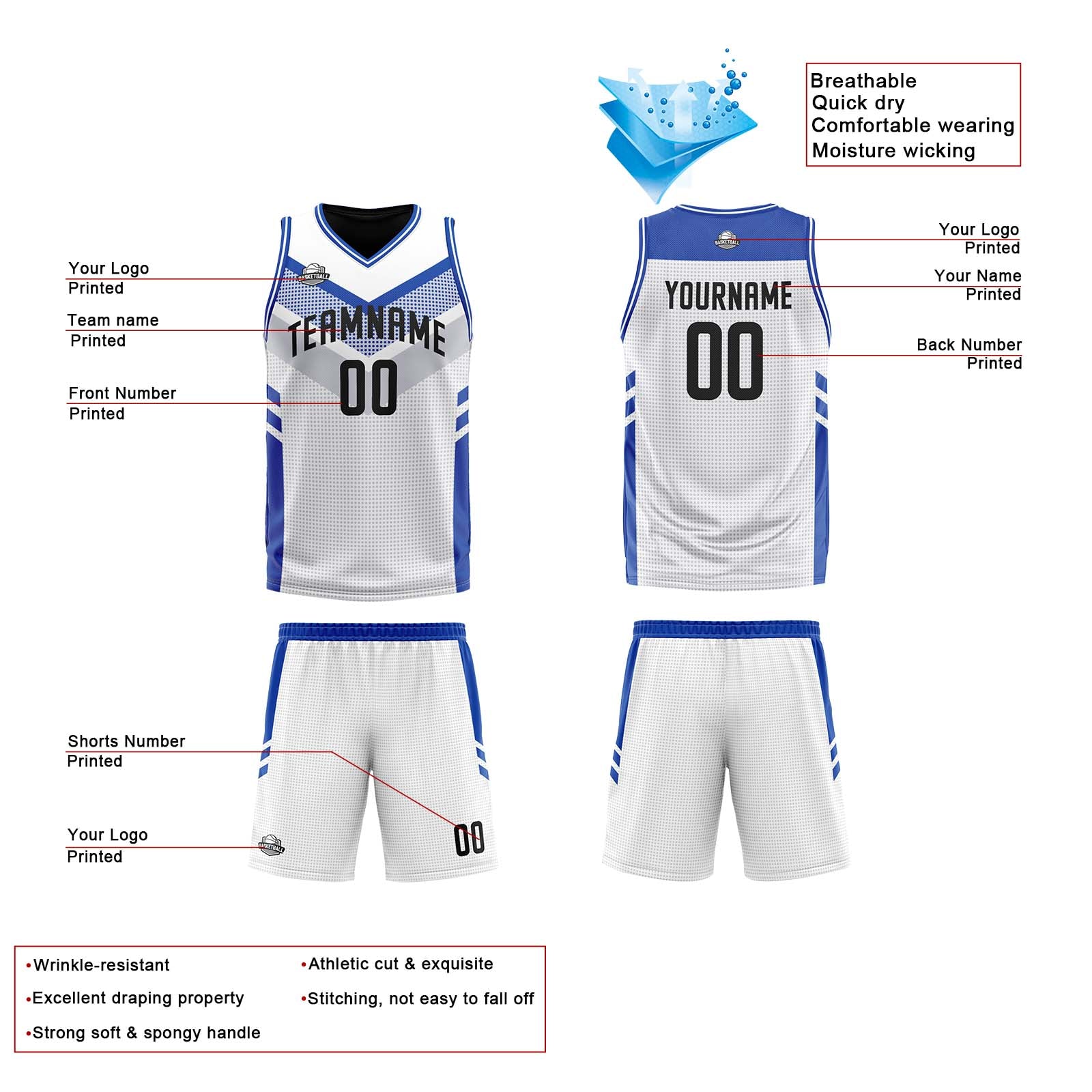 Benutzerdefinierte Weiß Blau Reversible Basketball Jersey Personalisierte Print Name Nummer Logo