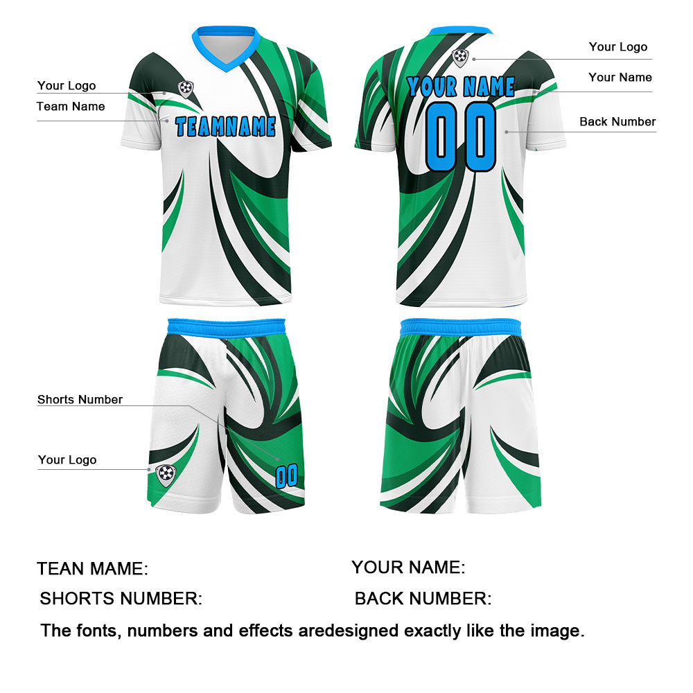 Benutzerdefinierte Weiß Grün Trikots für Männer Frauen Personalisierte Fußball Uniformen für Erwachsene und Kind
