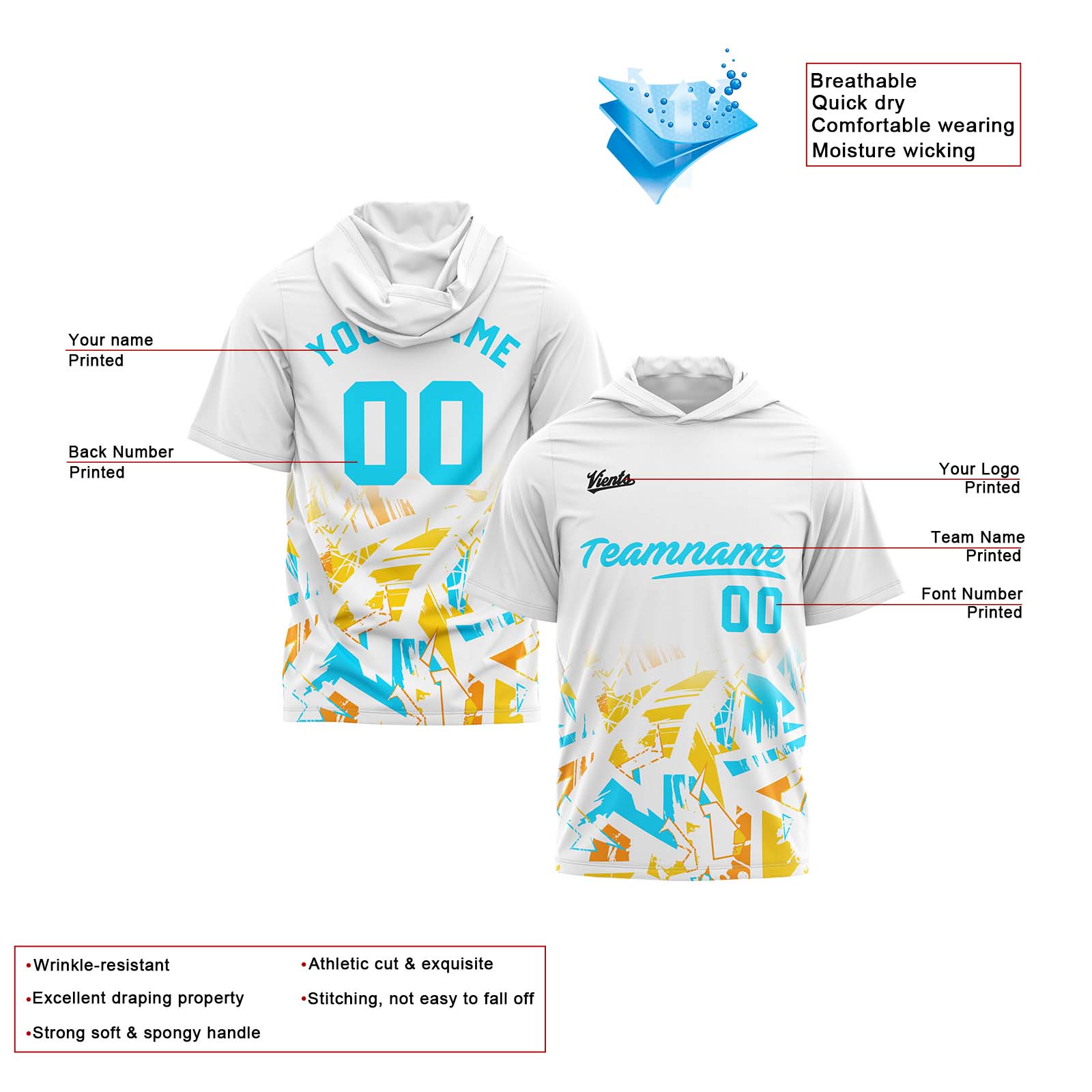 Benutzerdefinierte Weiß Hellblau Kurzarm-Kapuzenpullover für Männer Frauen Hemden mit Kapuzen gedruckt Name Logo