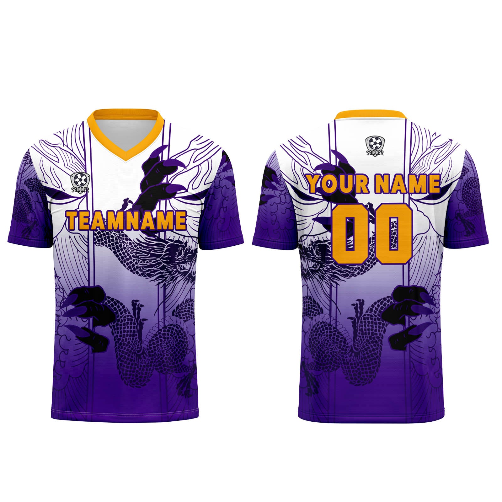Benutzerdefinierte Weiß Lila Trikots für Männer Frauen Personalisierte Fußball Uniformen für Erwachsene und Kind