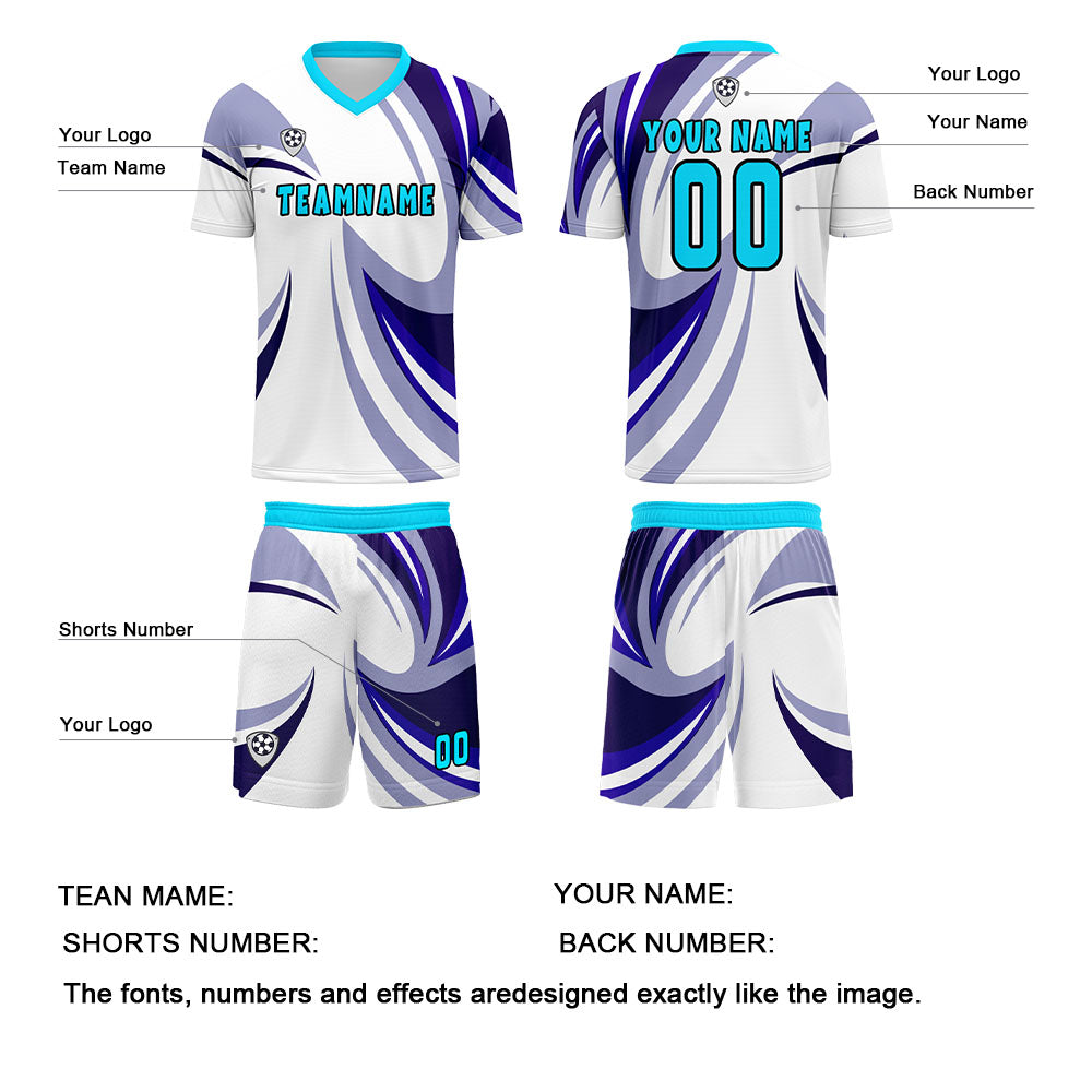 Benutzerdefinierte Weiß Lila Trikots für Männer Frauen Personalisierte Fußball Uniformen für Erwachsene und Kind