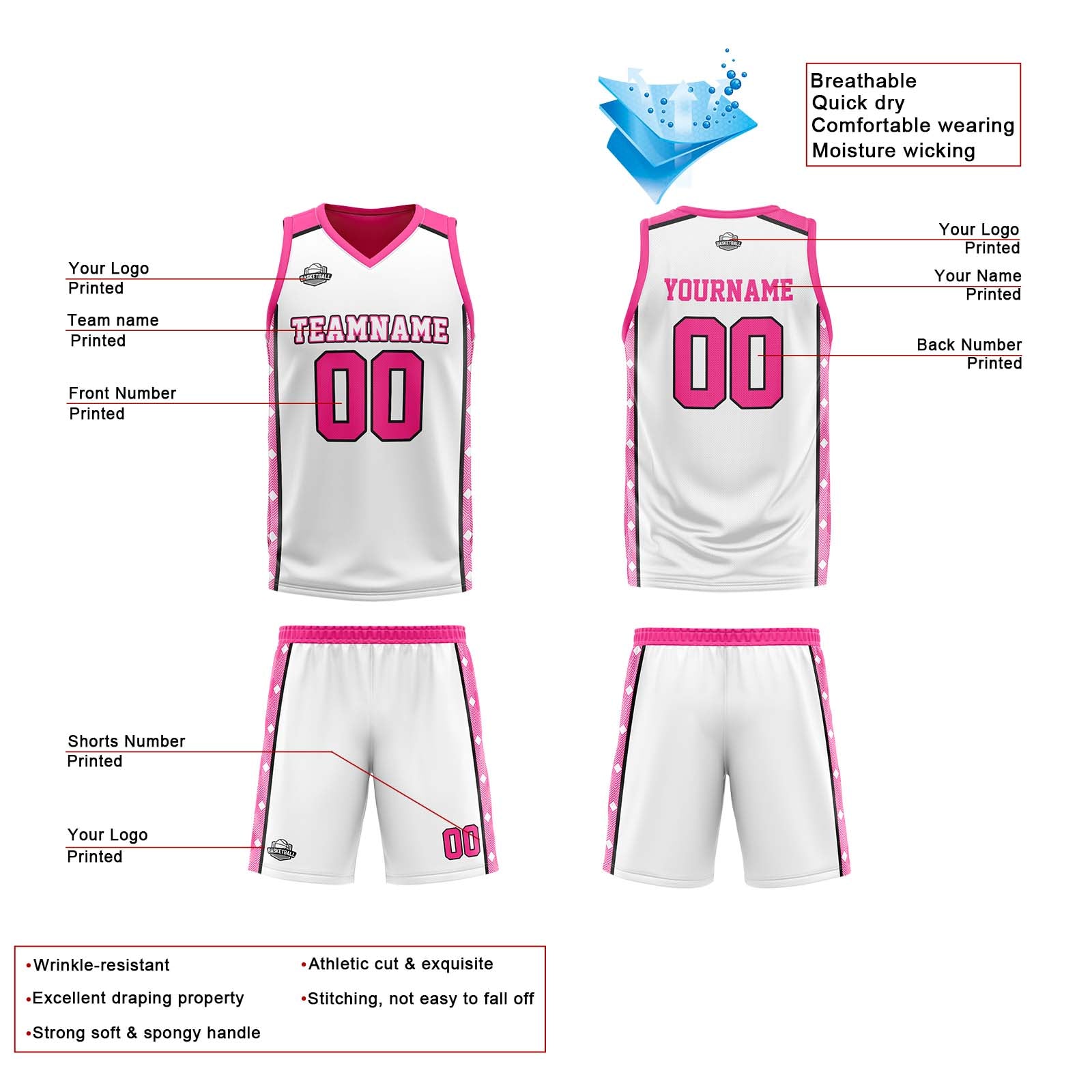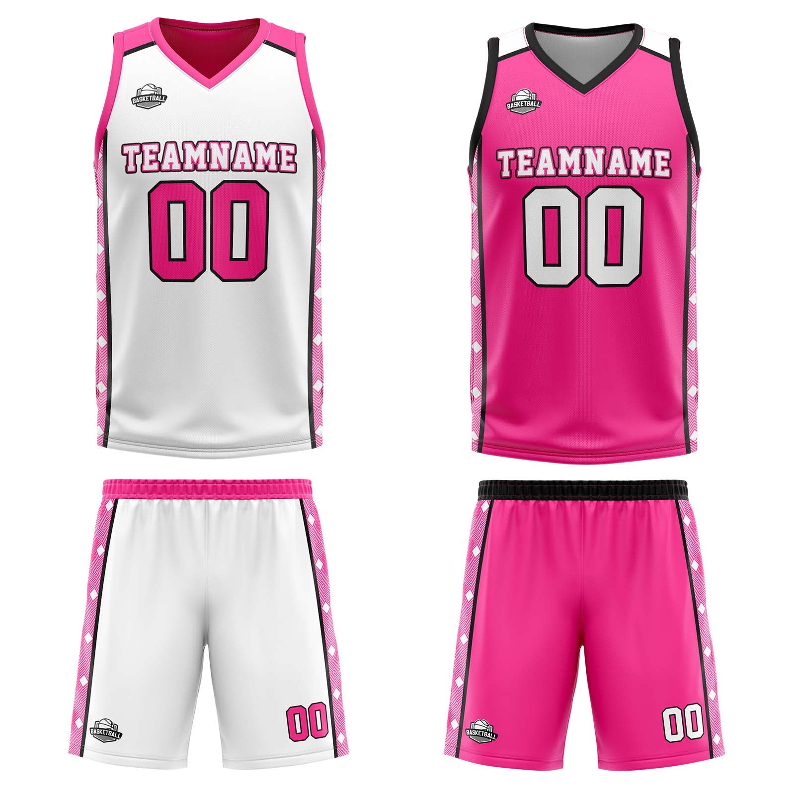 Benutzerdefinierte Weiß Rosa Reversible Basketball Jersey Personalisierte Print Name Nummer Logo