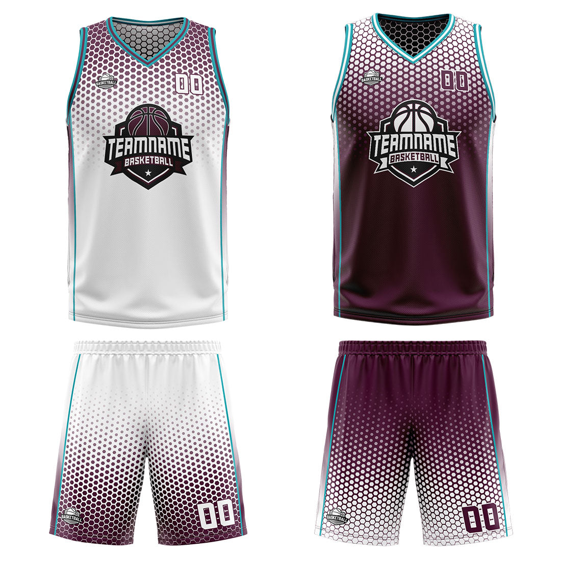 Benutzerdefinierte Weiß Rot Cyan Reversible Basketball Jersey Personalisierte Print Name Nummer Logo