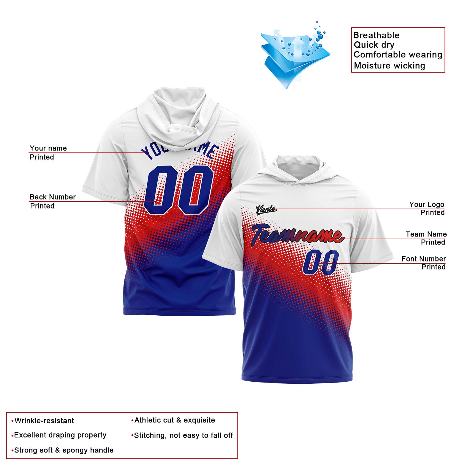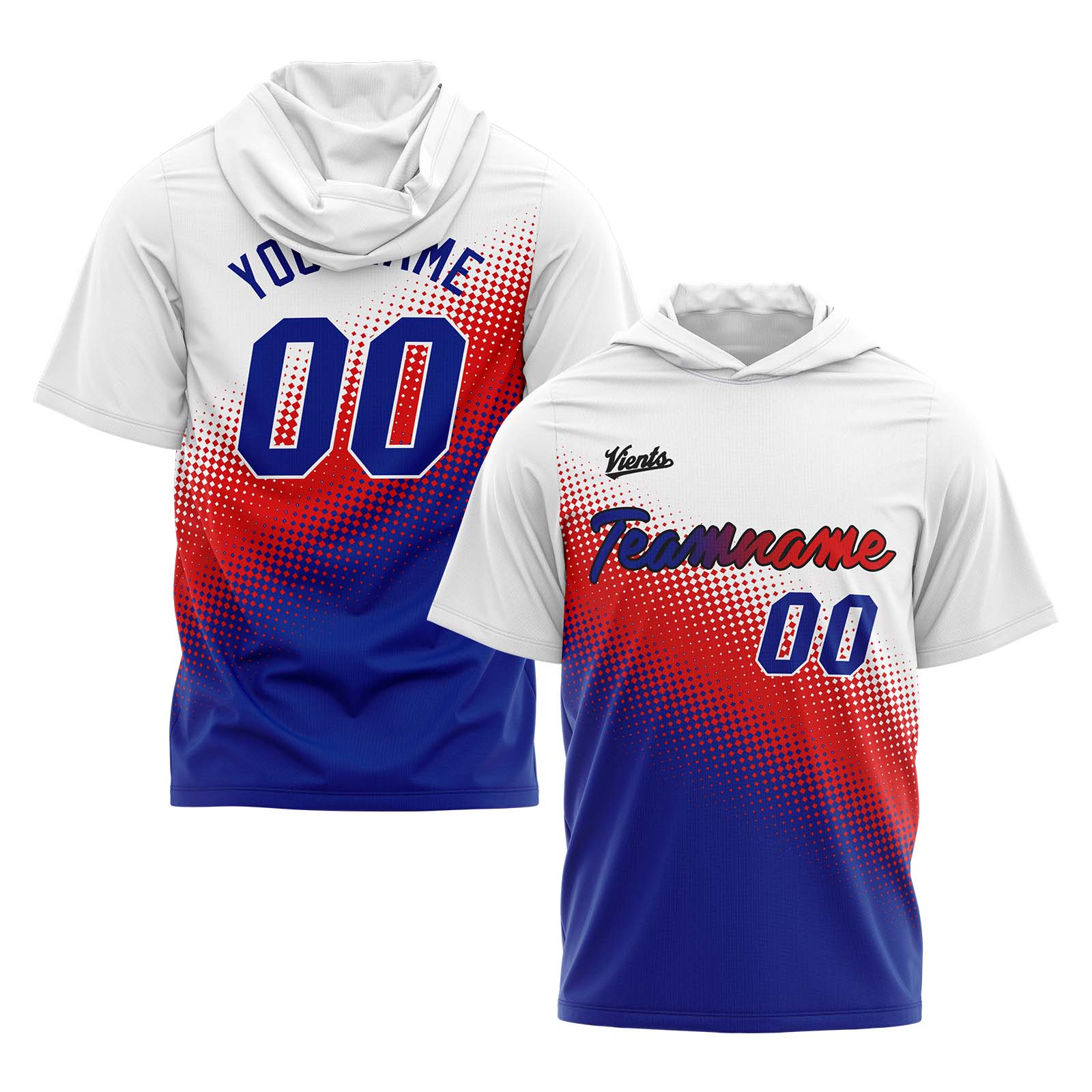 Benutzerdefinierte Weiß Rot Königlich Kurzarm-Kapuzenpullover für Männer Frauen Hemden mit Kapuzen gedruckt Name Logo
