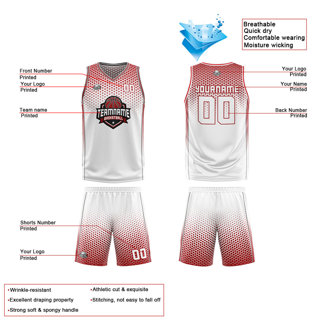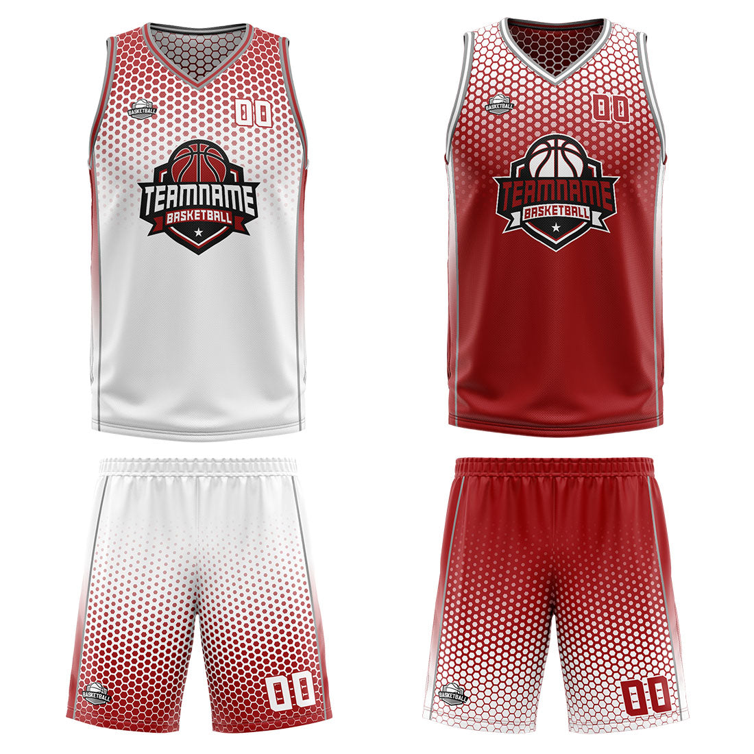 Benutzerdefinierte Weiß Rot Reversible Basketball Jersey Personalisierte Print Name Nummer Logo