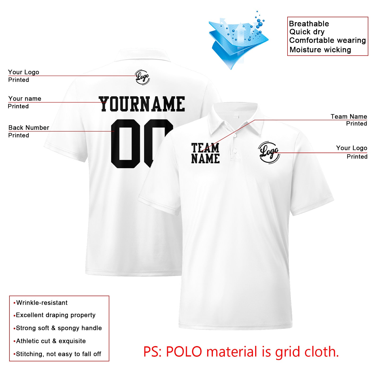 Benutzerdefinierte Weiß Schwarz Fußball Polo-Shirts Fügen Sie Ihr Einzigartiges hinzu Logo/Name/Nummer