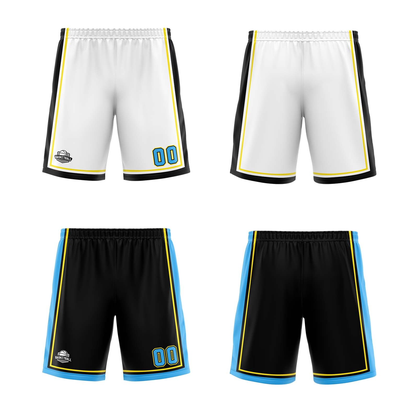 Benutzerdefinierte Weiß Schwarz Hellblau Reversible Basketball Jersey Personalisierte Print Name Nummer Logo
