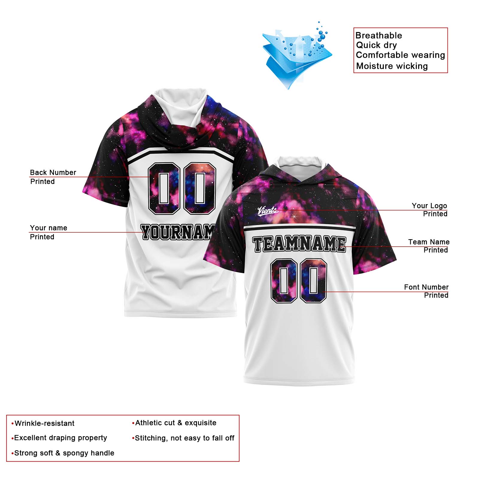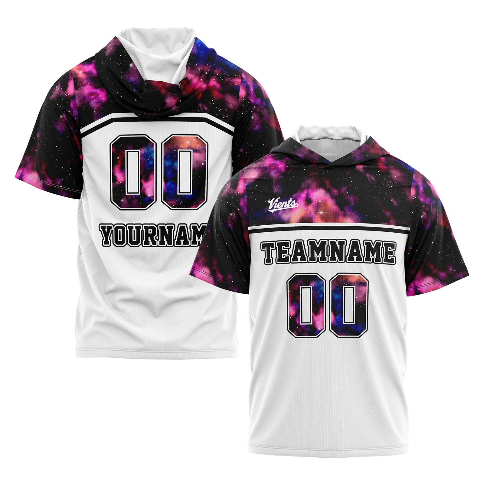 Benutzerdefinierte Weiß  Sternenhimmel Kurzarm-Kapuzenpullover für Männer Frauen Hemden mit Kapuzen gedruckt Name Logo