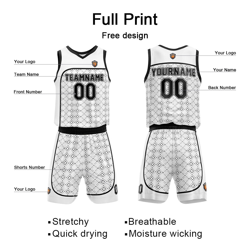 Benutzerdefinierter Basketball Jersey Uniform Anzug für Männer Frauen Mädchen Jungen gedruckt Ihr Logo Name Nummer Weiß
