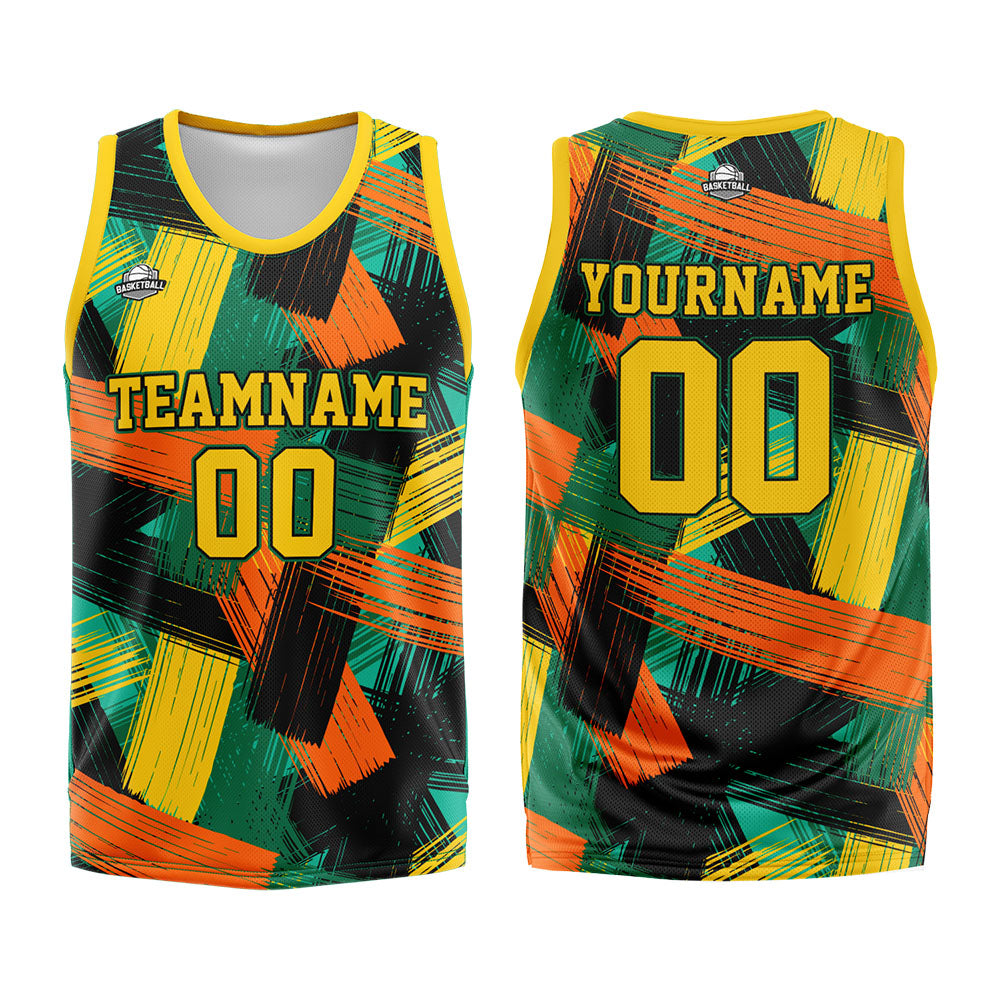 Benutzerdefinierter Basketball Jersey Uniform Anzug gedruckt Ihr Logo Name Nummer Gelb&Grün