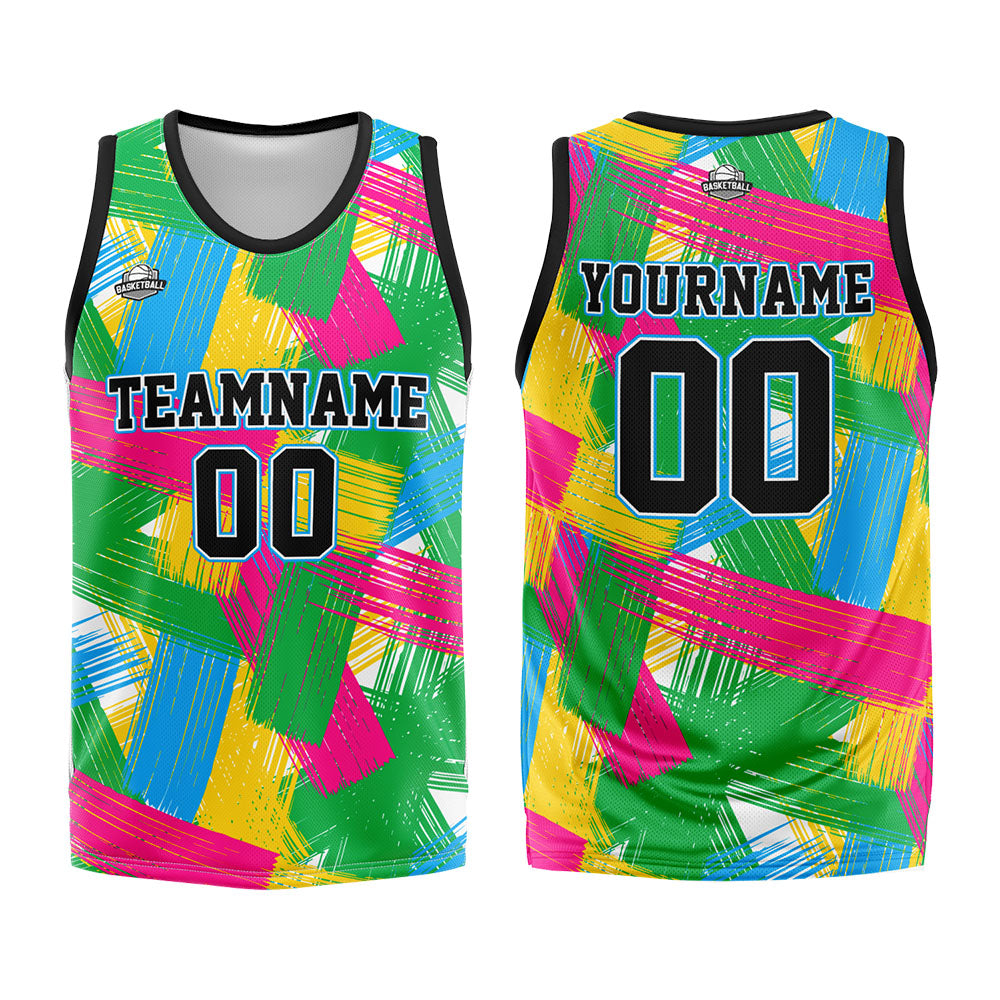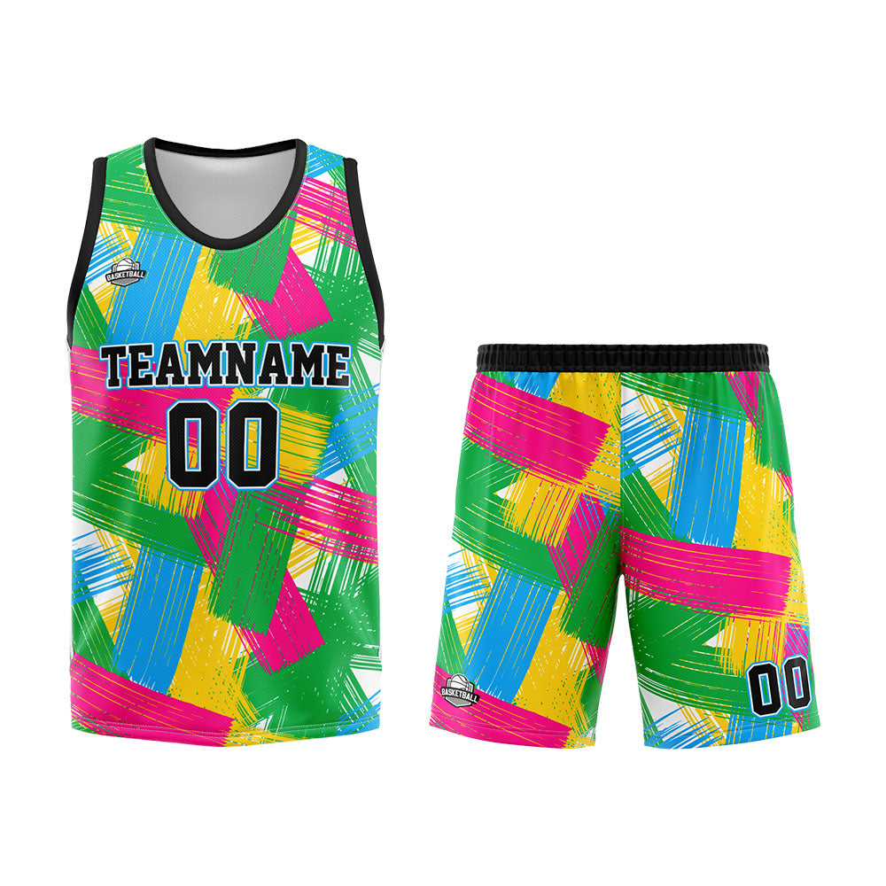 Benutzerdefinierter Basketball Jersey Uniform Anzug gedruckt Ihr Logo Name Nummer Grün&Pink