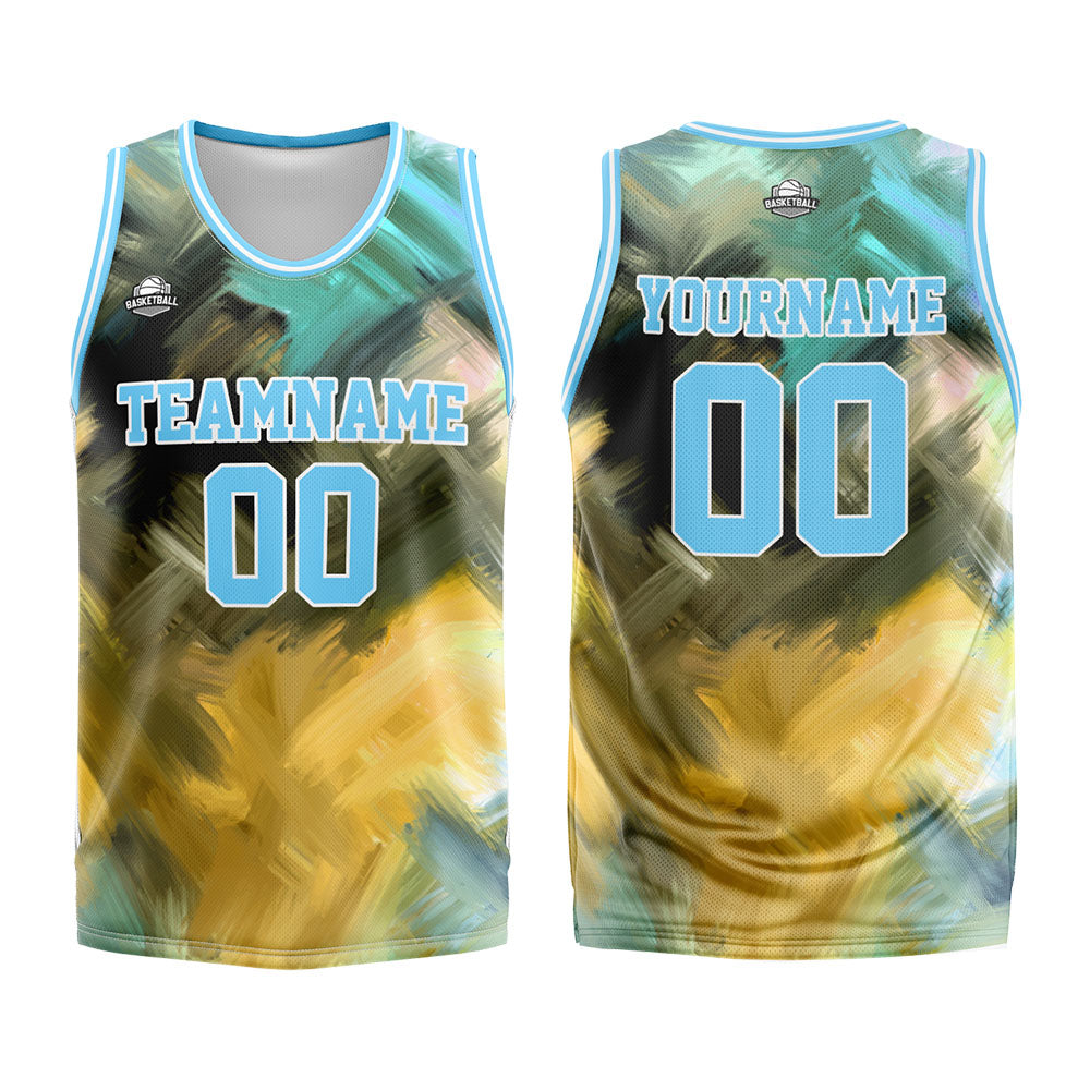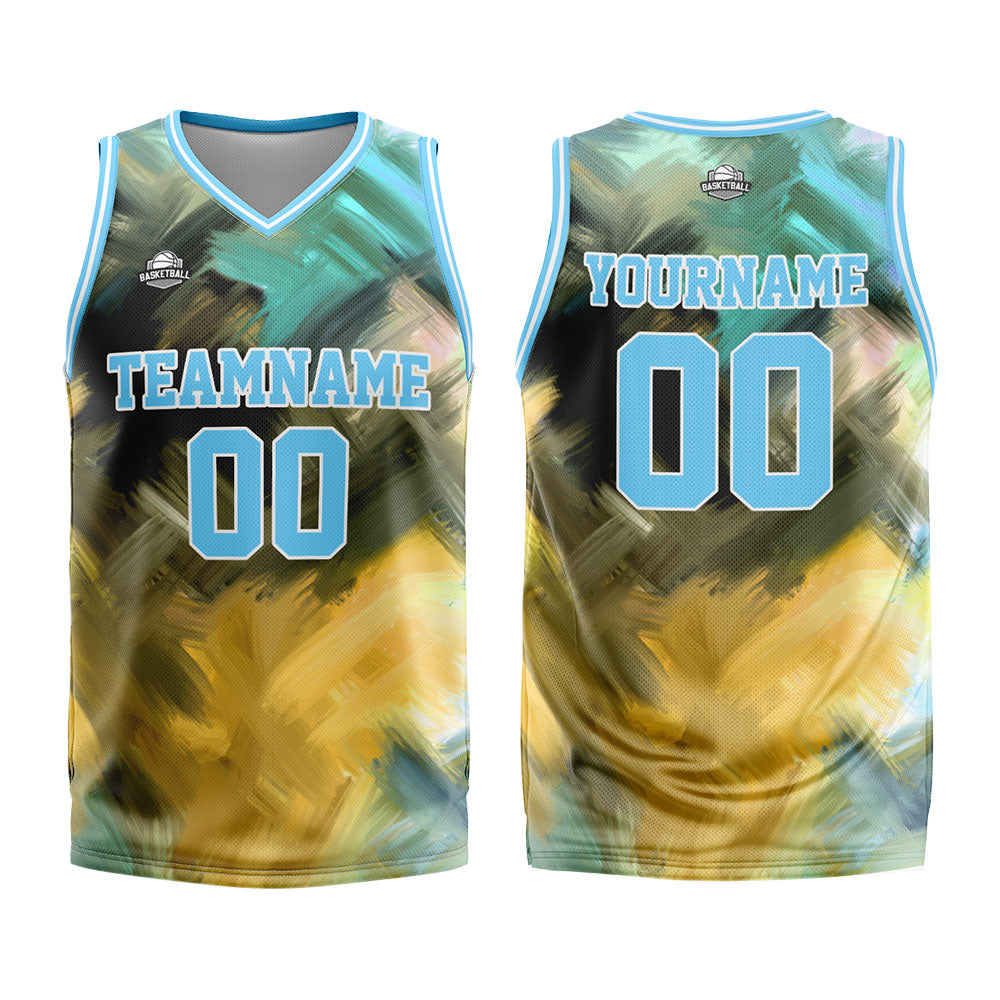 Benutzerdefinierter Basketball Jersey Uniform Anzug gedruckt Ihr Logo Name Nummer Hellblau&Gelb