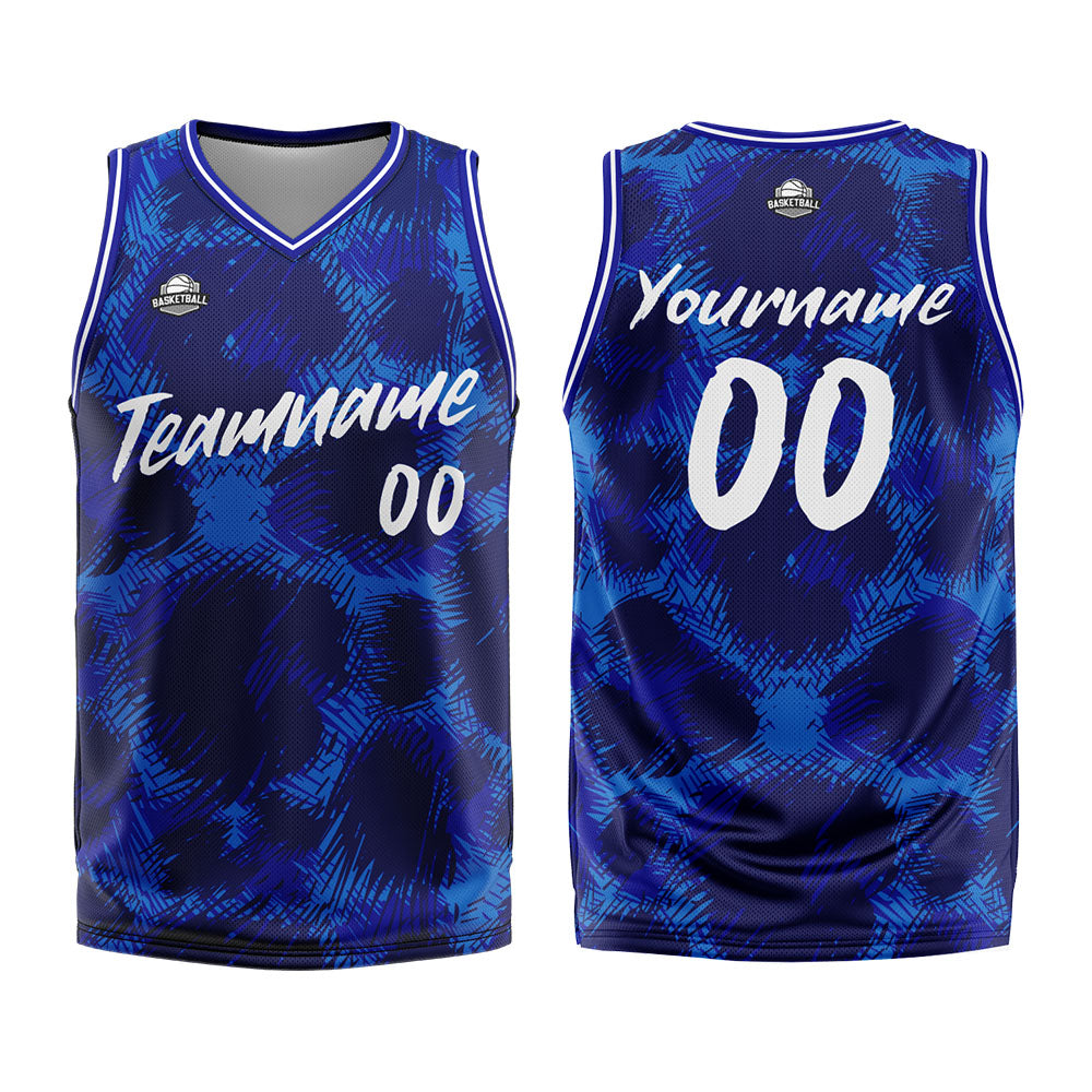 Benutzerdefinierter Basketball Jersey Uniform Anzug gedruckt Ihr Logo Name Nummer Royal Leopard drucken