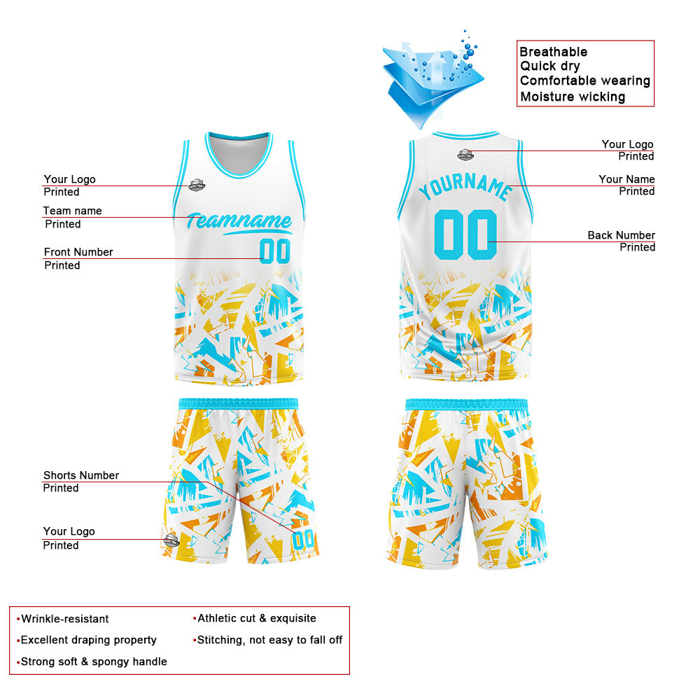 Benutzerdefinierter Basketball Jersey Uniform Anzug gedruckt Ihr Logo Name Nummer Weiß&Hellblau