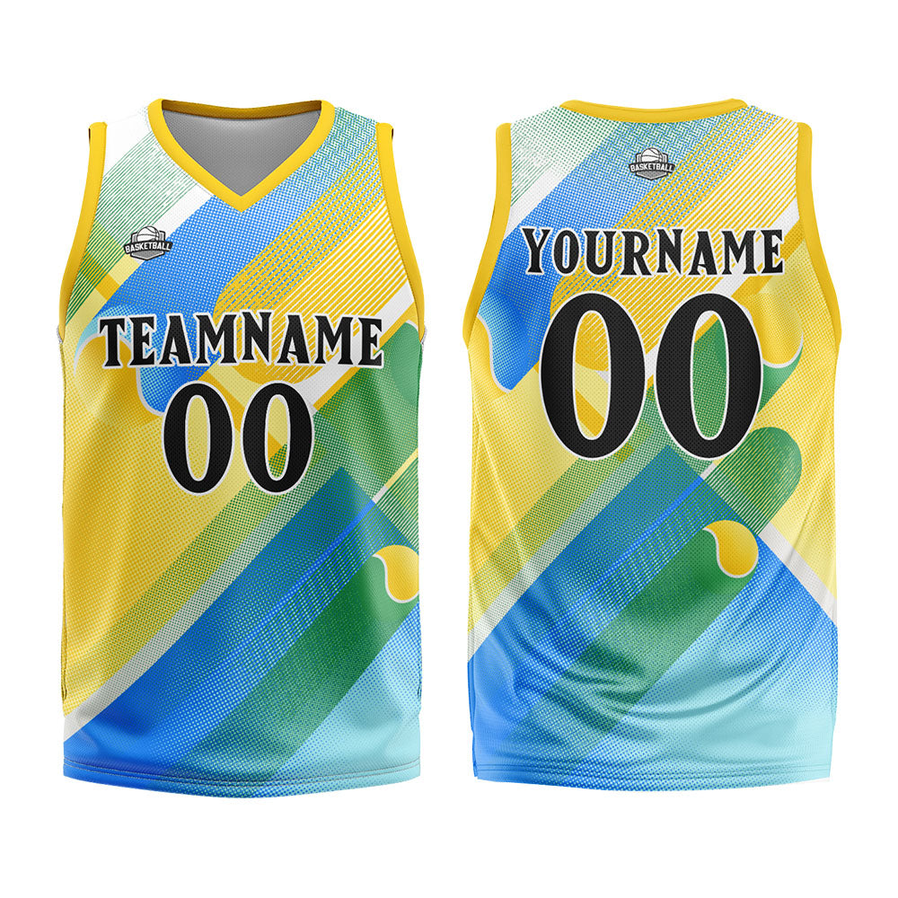 Benutzerdefinierter Basketball Jersey Uniform Anzug gedruckt Ihr Logo Name Nummer Gelb&Blau
