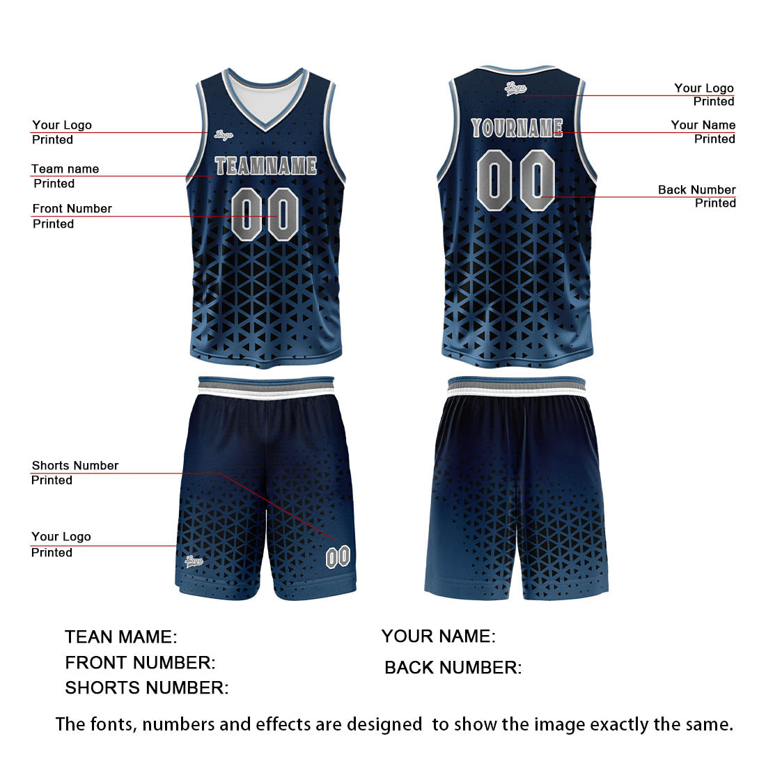 Benutzerdefinierter Blau Grau Basketball Jersey Uniform Anzug gedruckt Ihr Logo Name Nummer