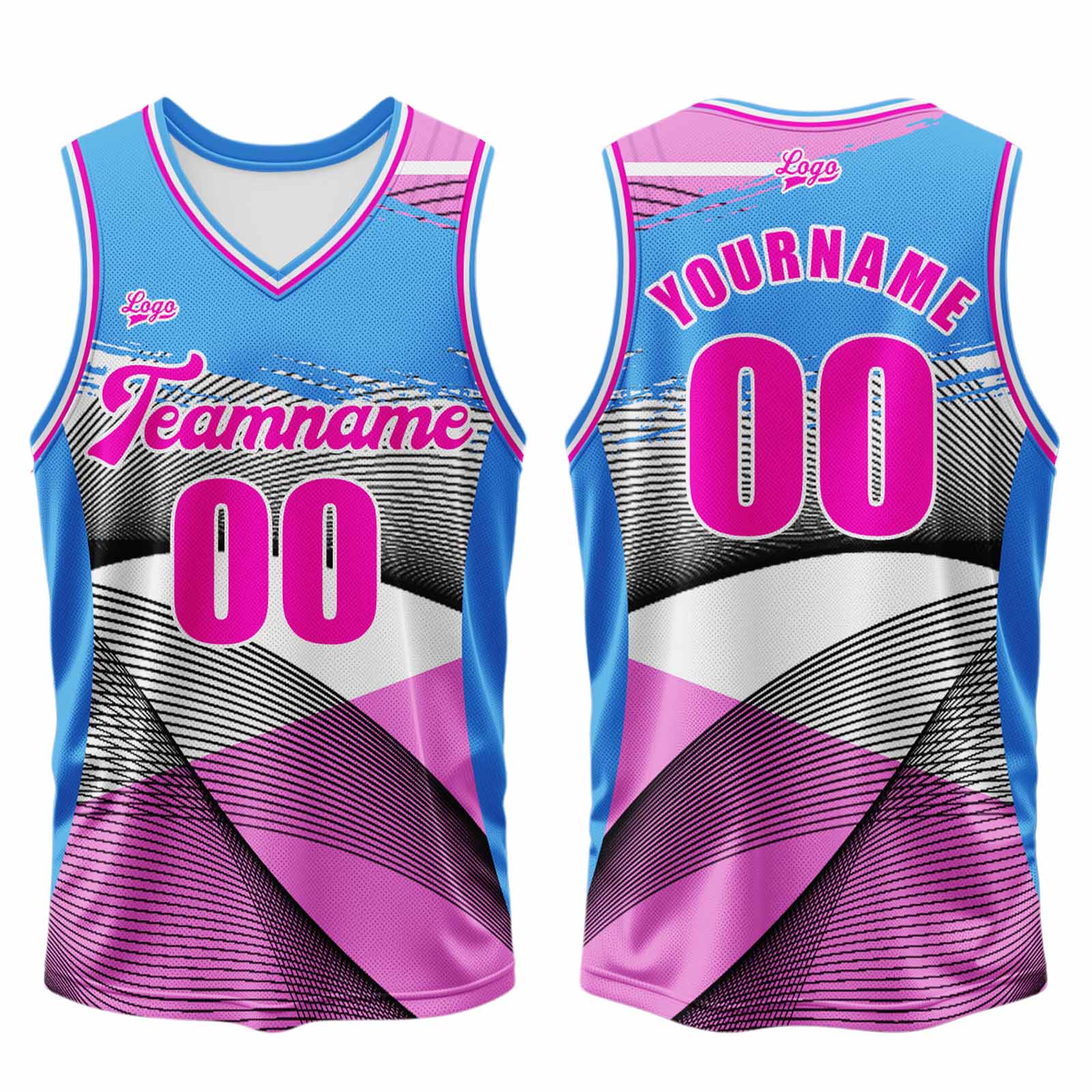 Benutzerdefinierter Blau Rosa Basketball Jersey Uniform Anzug gedruckt Ihr Logo Name Nummer