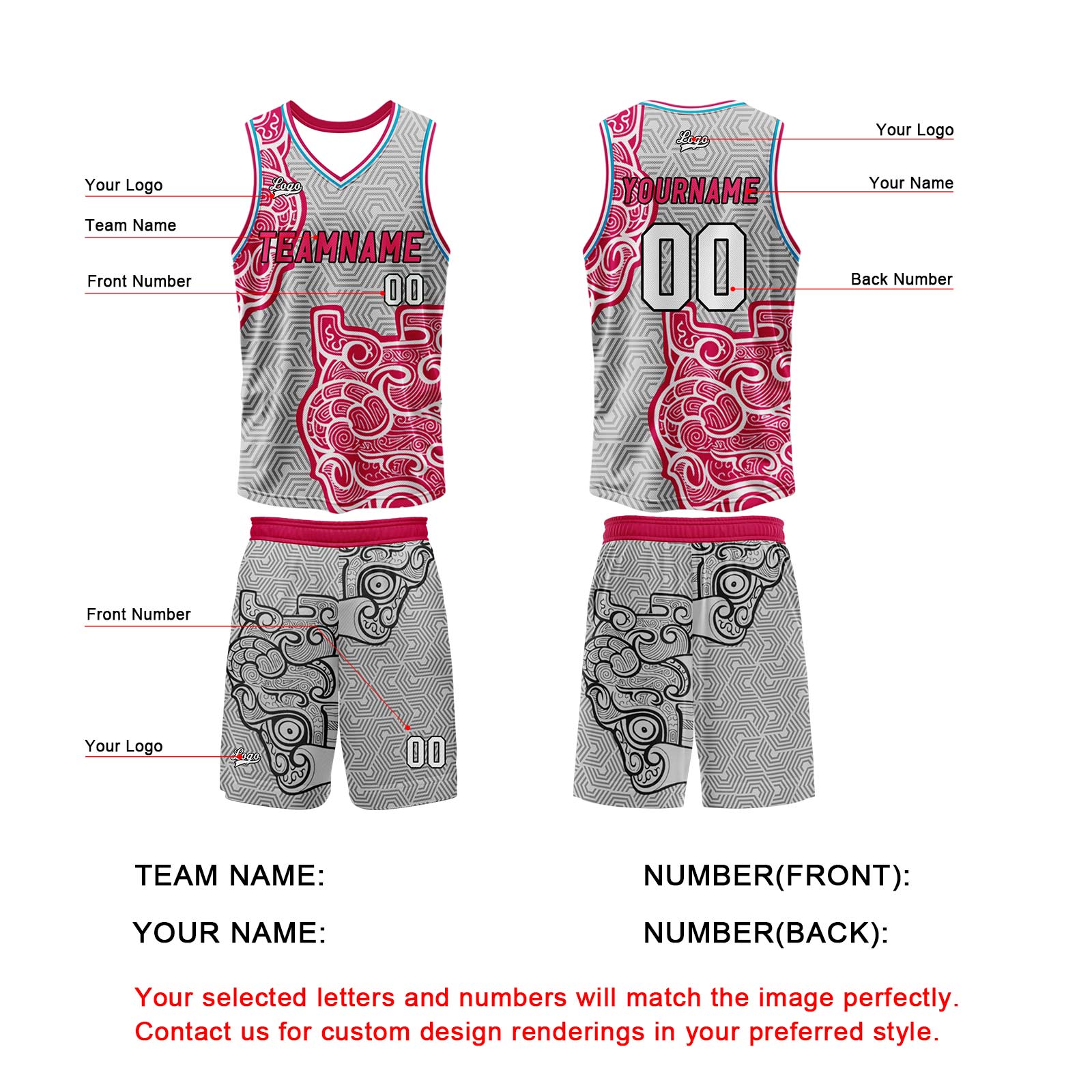Benutzerdefinierter Grau Rosa Basketball Jersey Uniform Anzug gedruckt Ihr Logo Name Nummer