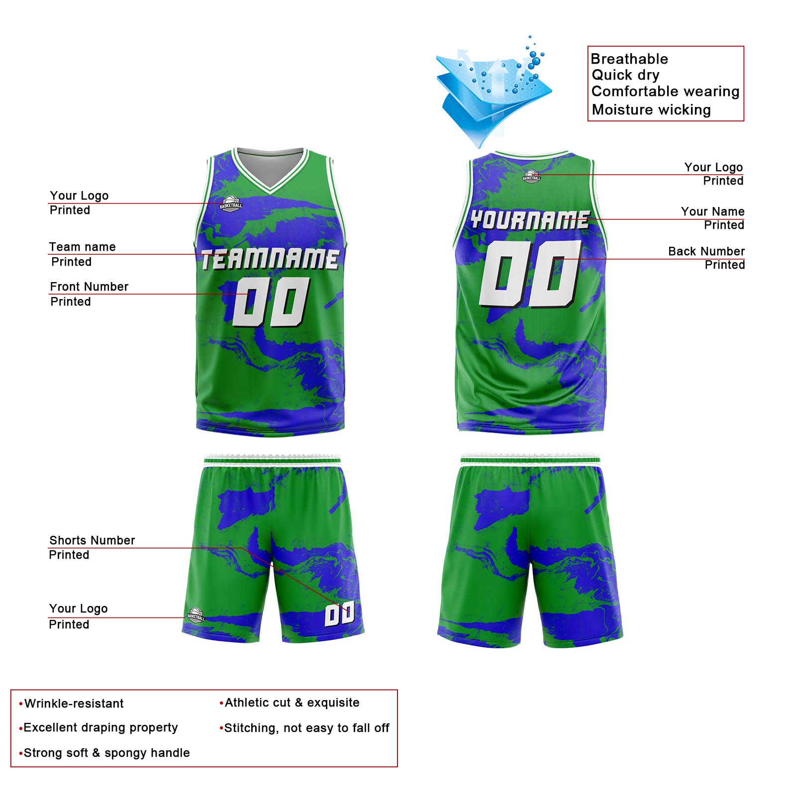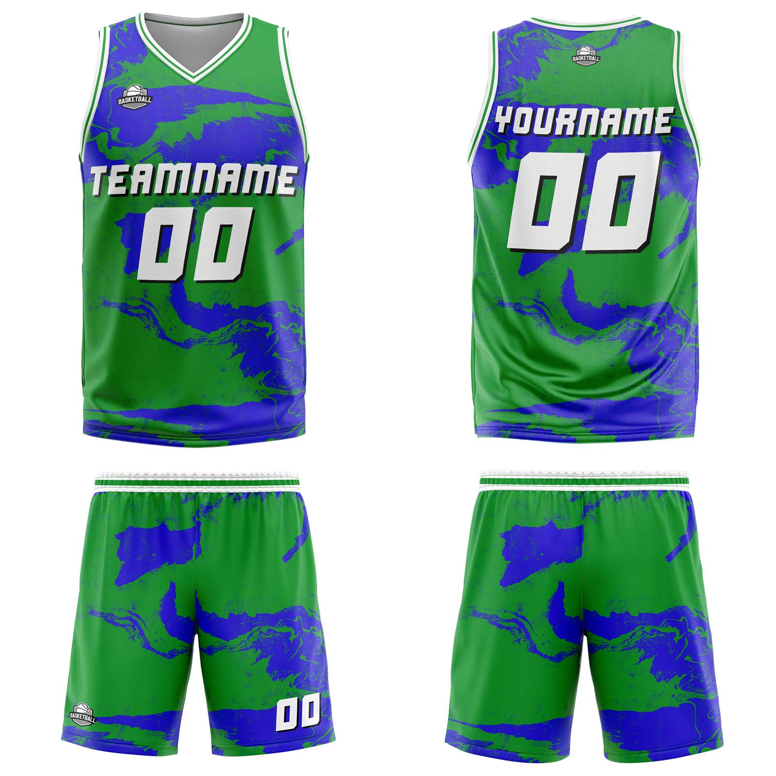 Benutzerdefinierter Grün Blau Basketball Jersey Uniform Anzug gedruckt Ihr Logo Name Nummer
