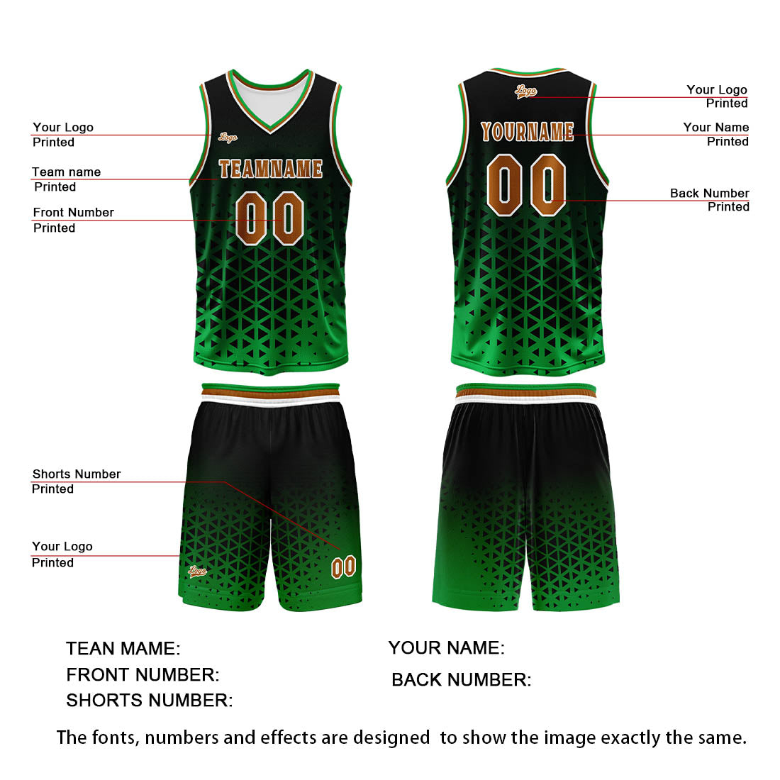 Benutzerdefinierter Grün Braun Basketball Jersey Uniform Anzug gedruckt Ihr Logo Name Nummer