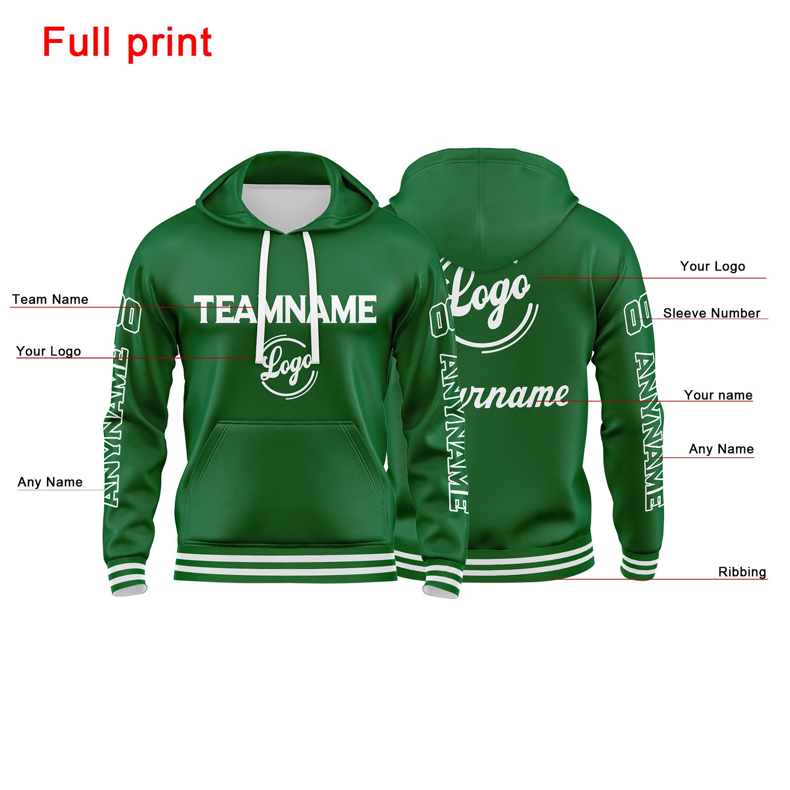 Benutzerdefinierter Grün Hoodie für Mann, Frau, Mädchen, Junge. Drucken Sie Ihr Logo, Ihren Namen und Ihre Nummer