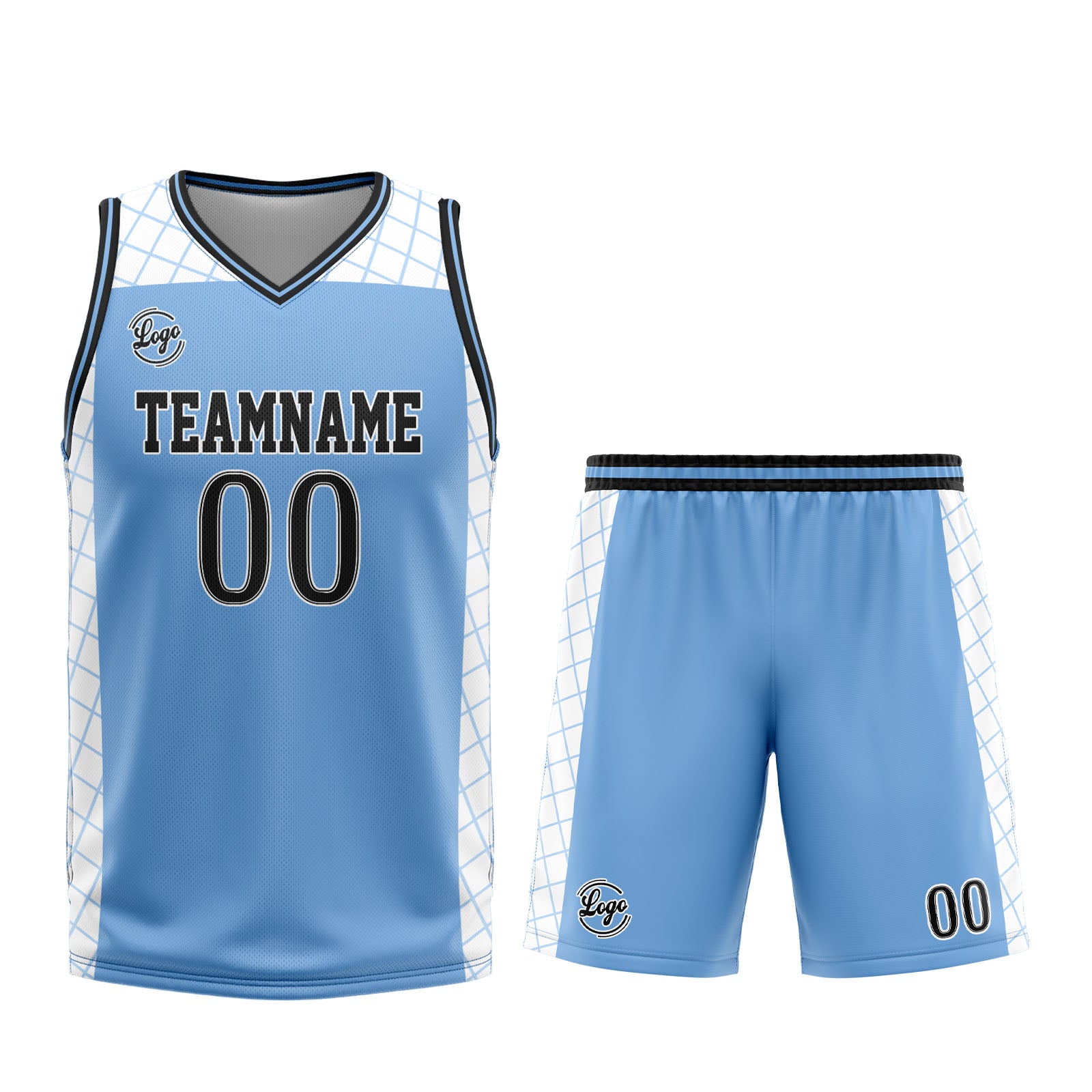 Benutzerdefinierter Hellblau Schwarz Basketball Jersey Uniform Anzug gedruckt Ihr Logo Name Nummer
