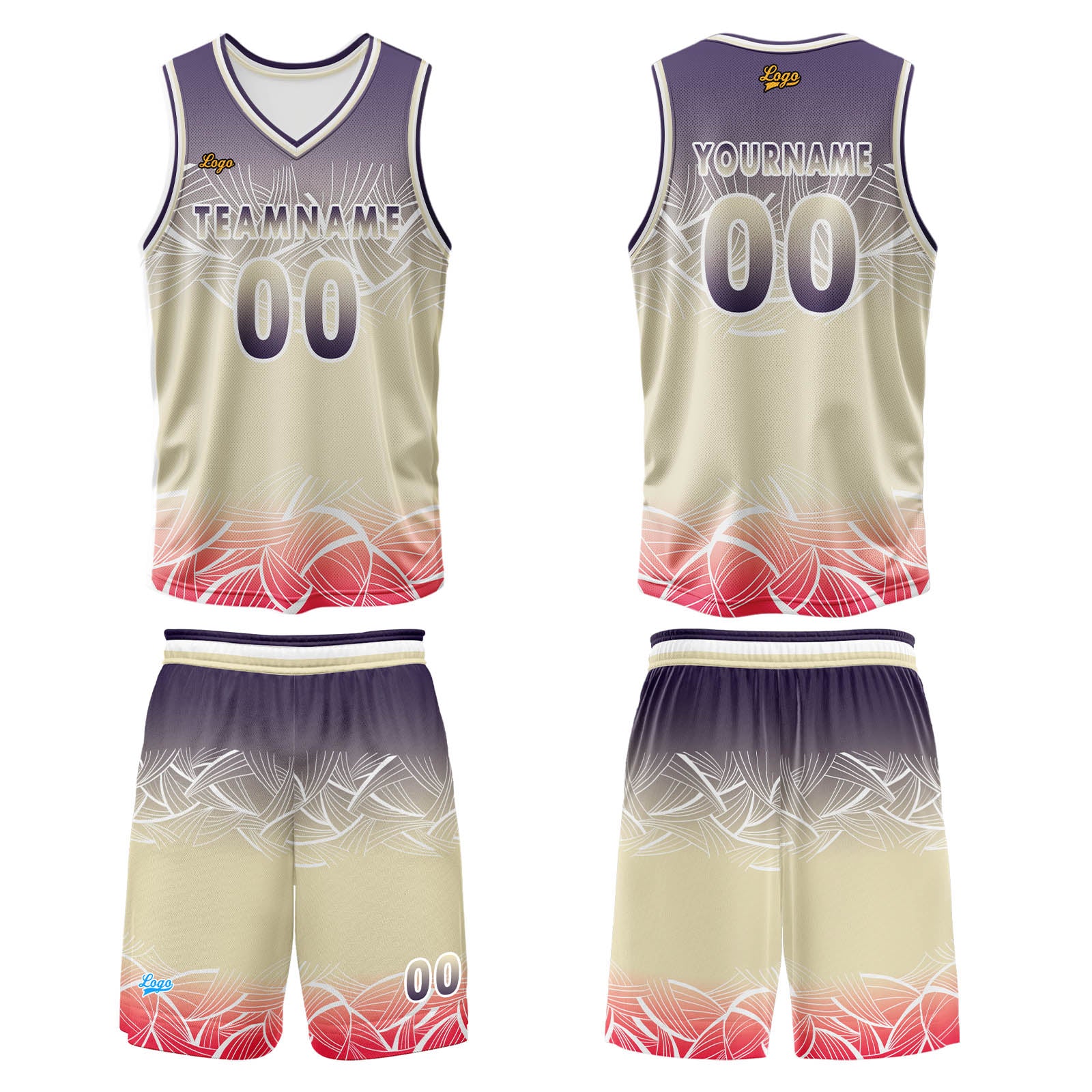 Benutzerdefinierter Lila Fleischfarbe Basketball Jersey Uniform Anzug gedruckt Ihr Logo Name Nummer