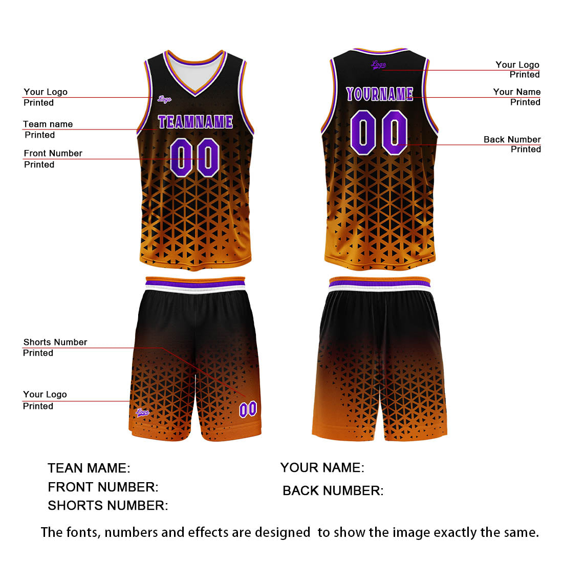Benutzerdefinierter Orange Lila Basketball Jersey Uniform Anzug gedruckt Ihr Logo Name Nummer