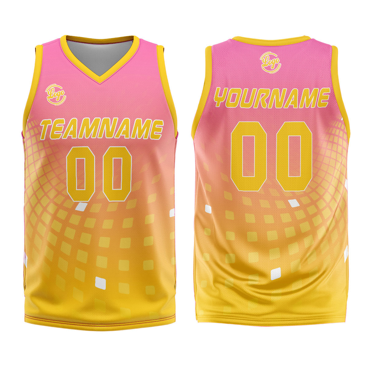 Benutzerdefinierter Rosa Gelb Basketball Jersey Uniform Anzug gedruckt Ihr Logo Name Nummer