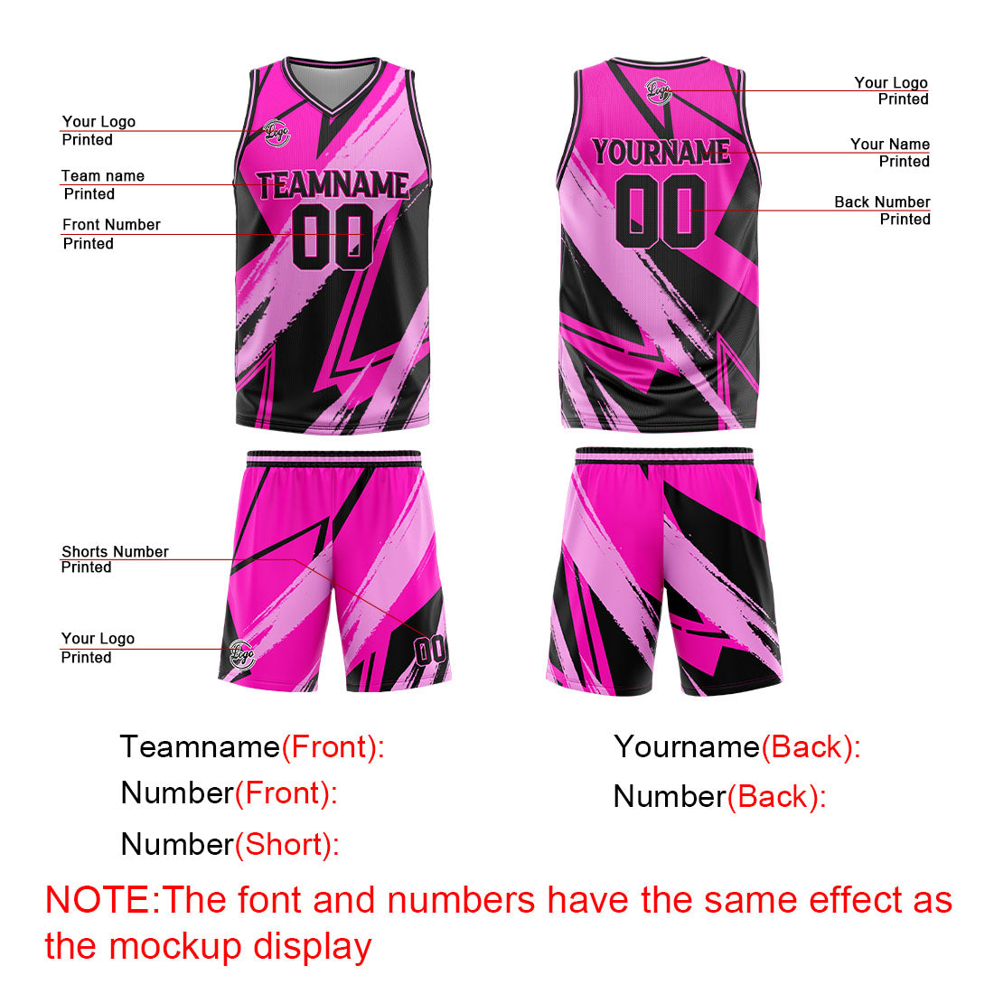 Benutzerdefinierter Rosa Schwarz Basketball Jersey Uniform Anzug gedruckt Ihr Logo Name Nummer