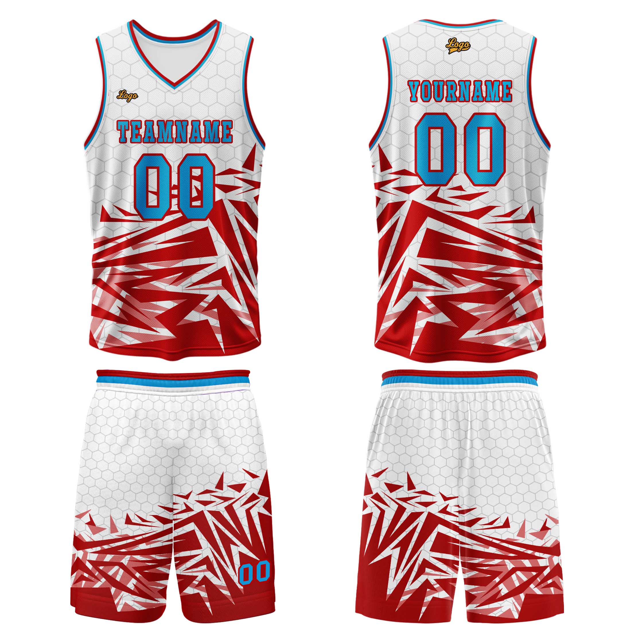 Benutzerdefinierter Rot Blau Basketball Jersey Uniform Anzug gedruckt Ihr Logo Name Nummer