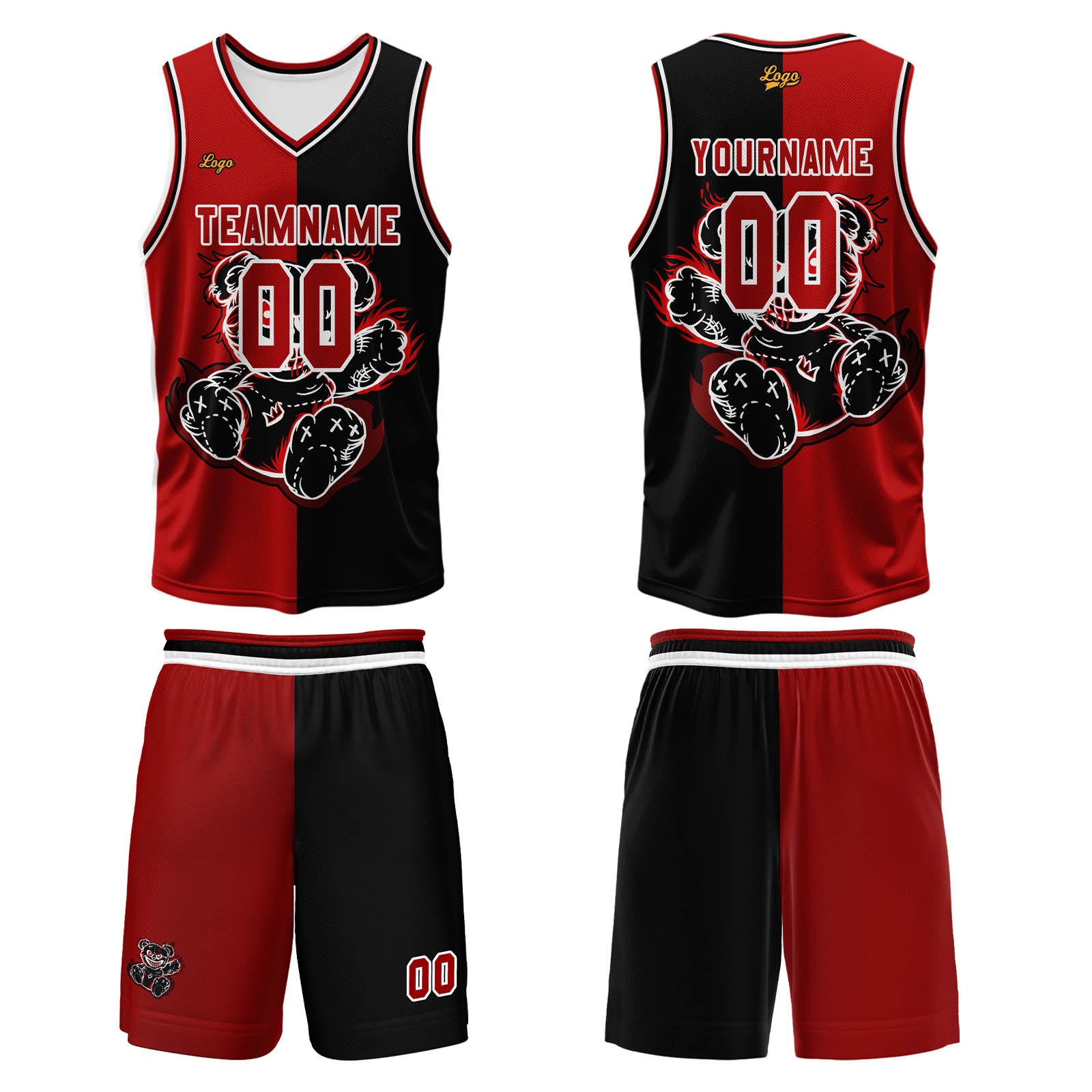 Benutzerdefinierter Rot Schwarz Basketball Jersey Uniform Anzug gedruckt Ihr Logo Name Nummer
