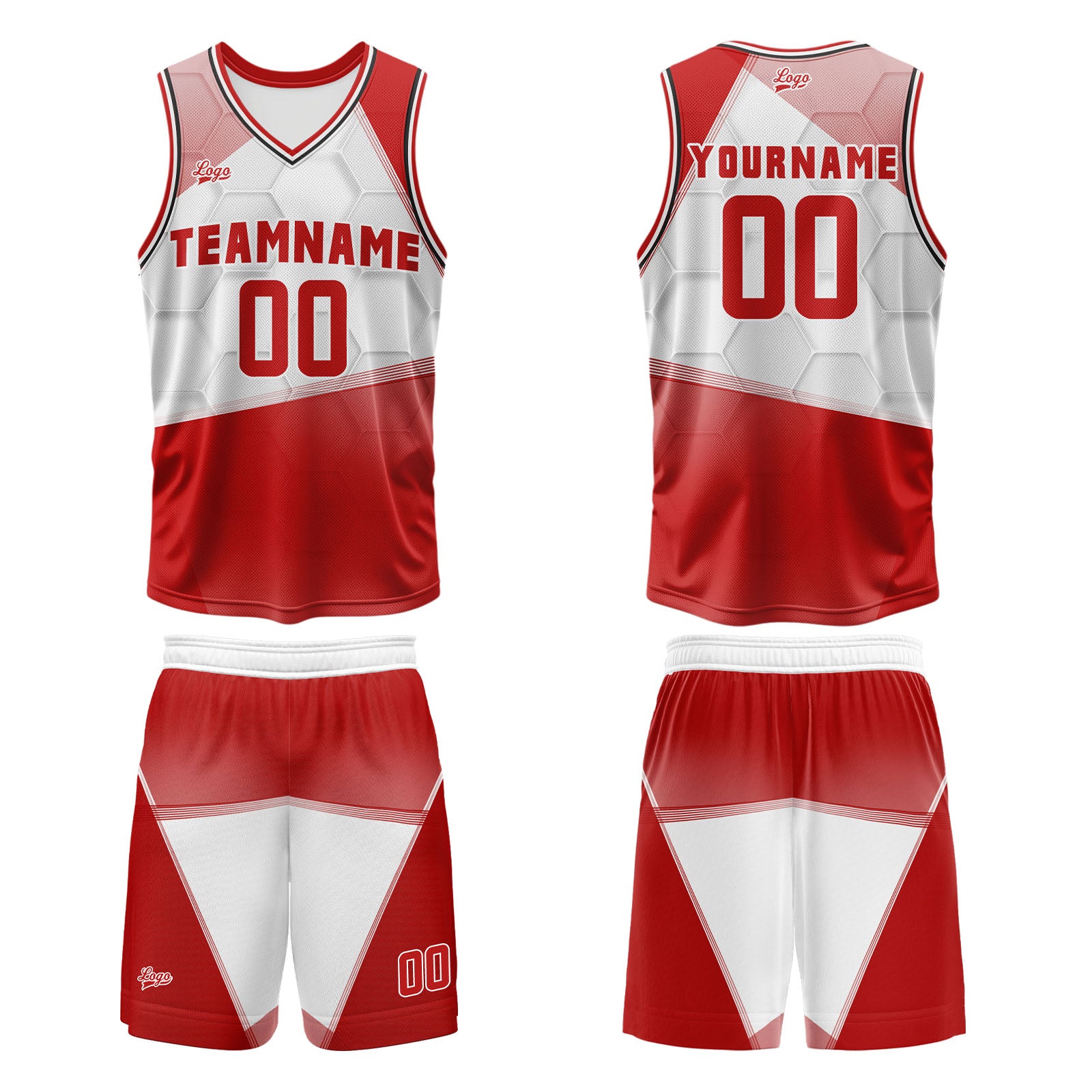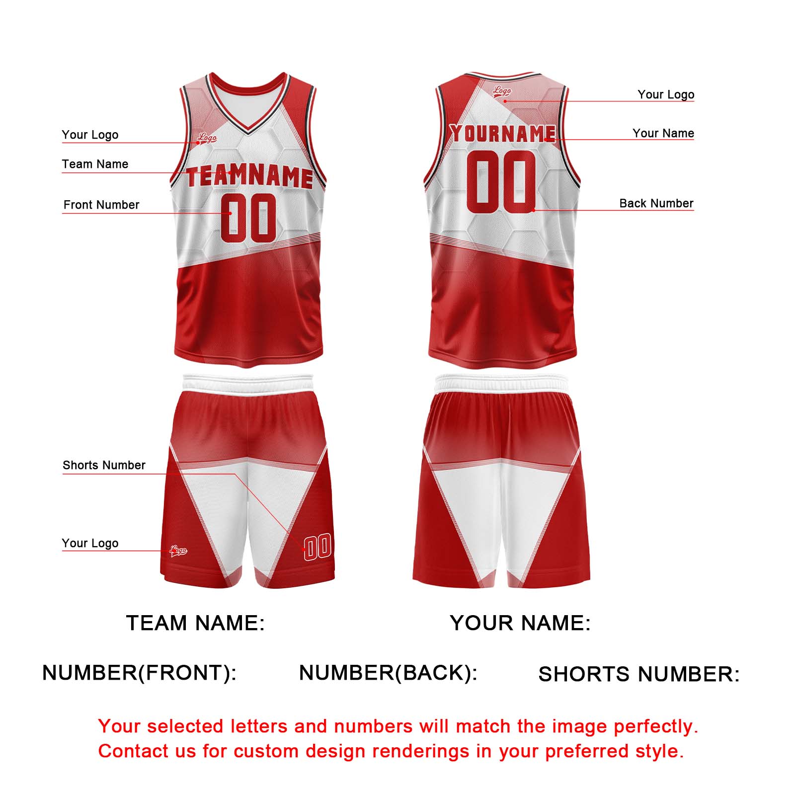 Benutzerdefinierter Rot Weiß Basketball Jersey Uniform Anzug gedruckt Ihr Logo Name Nummer