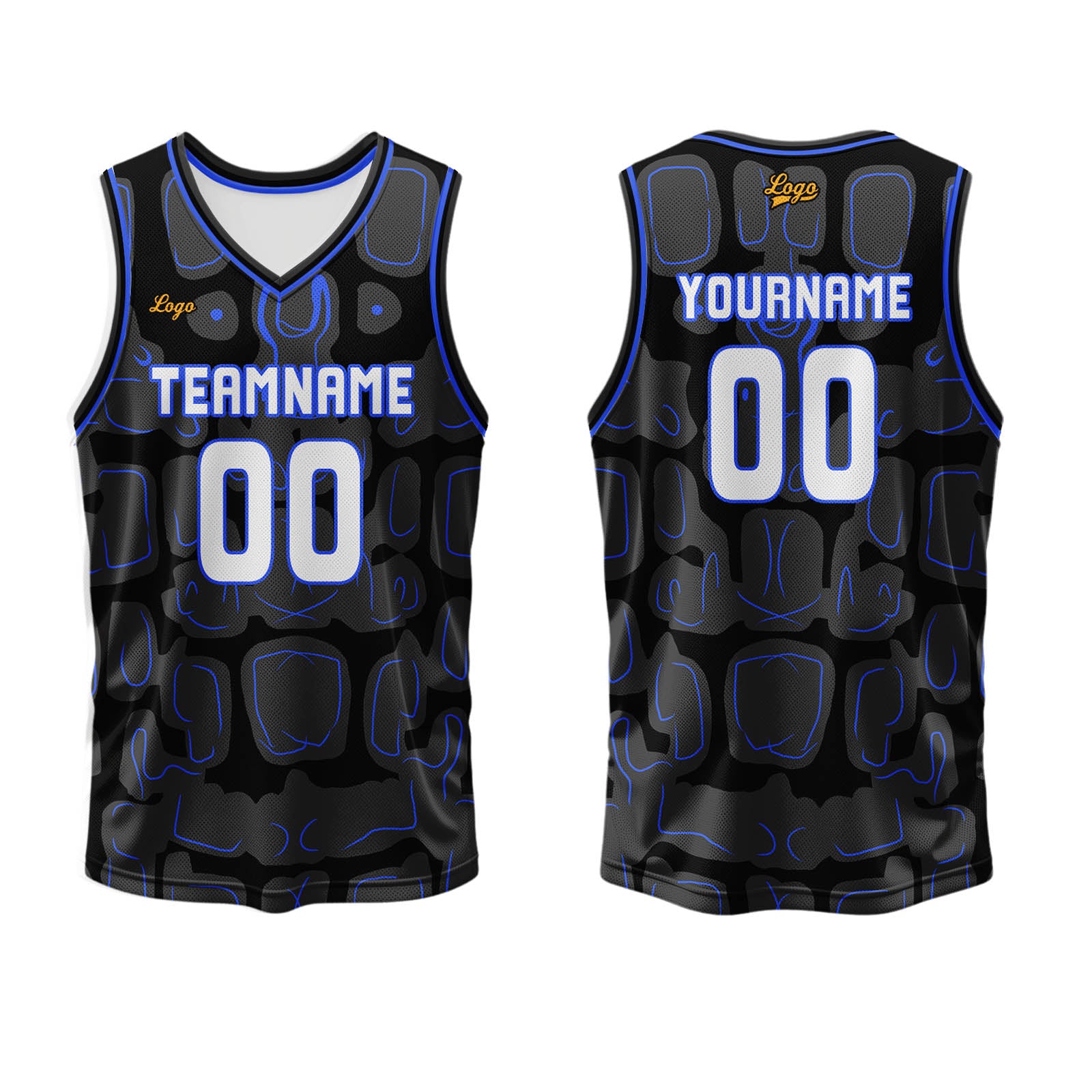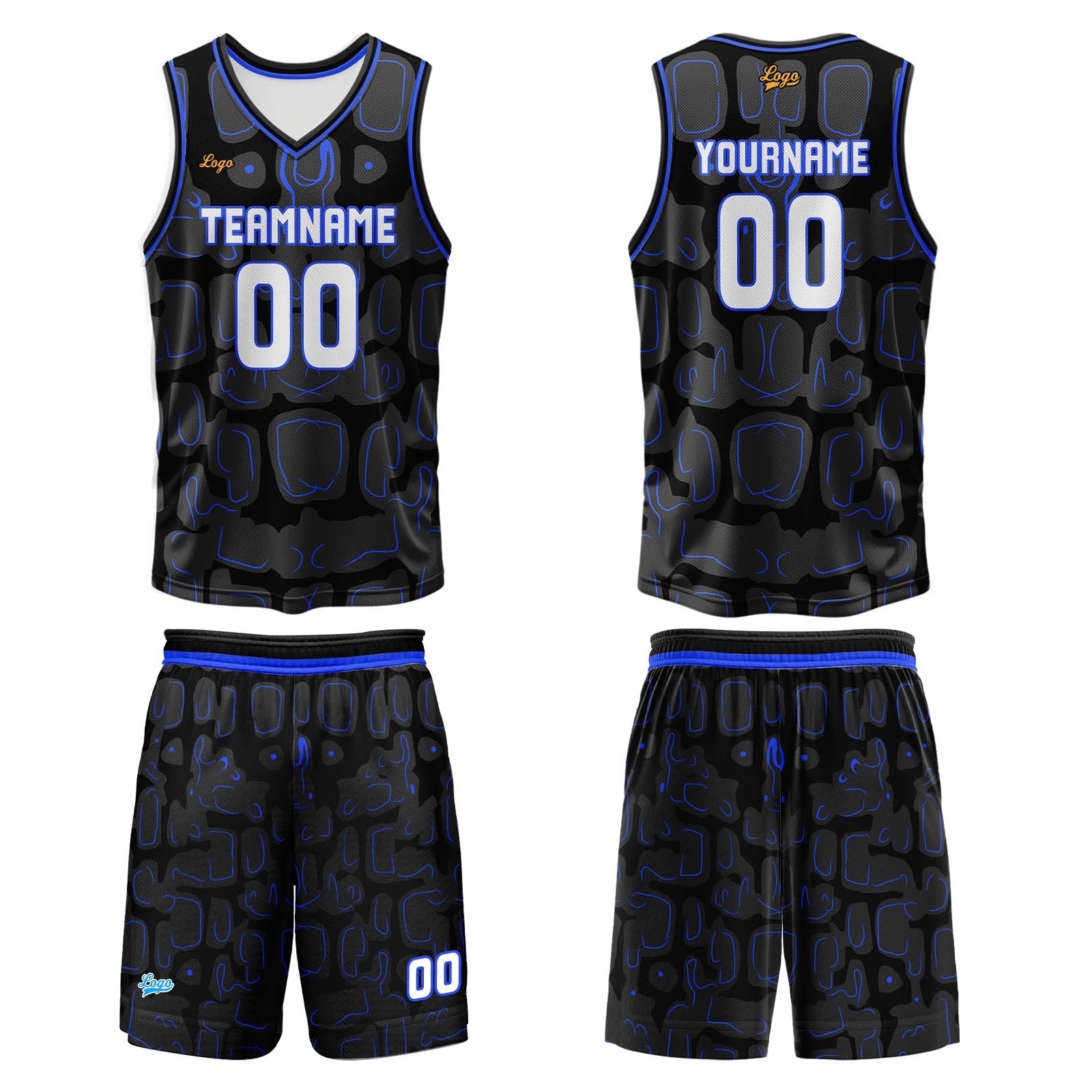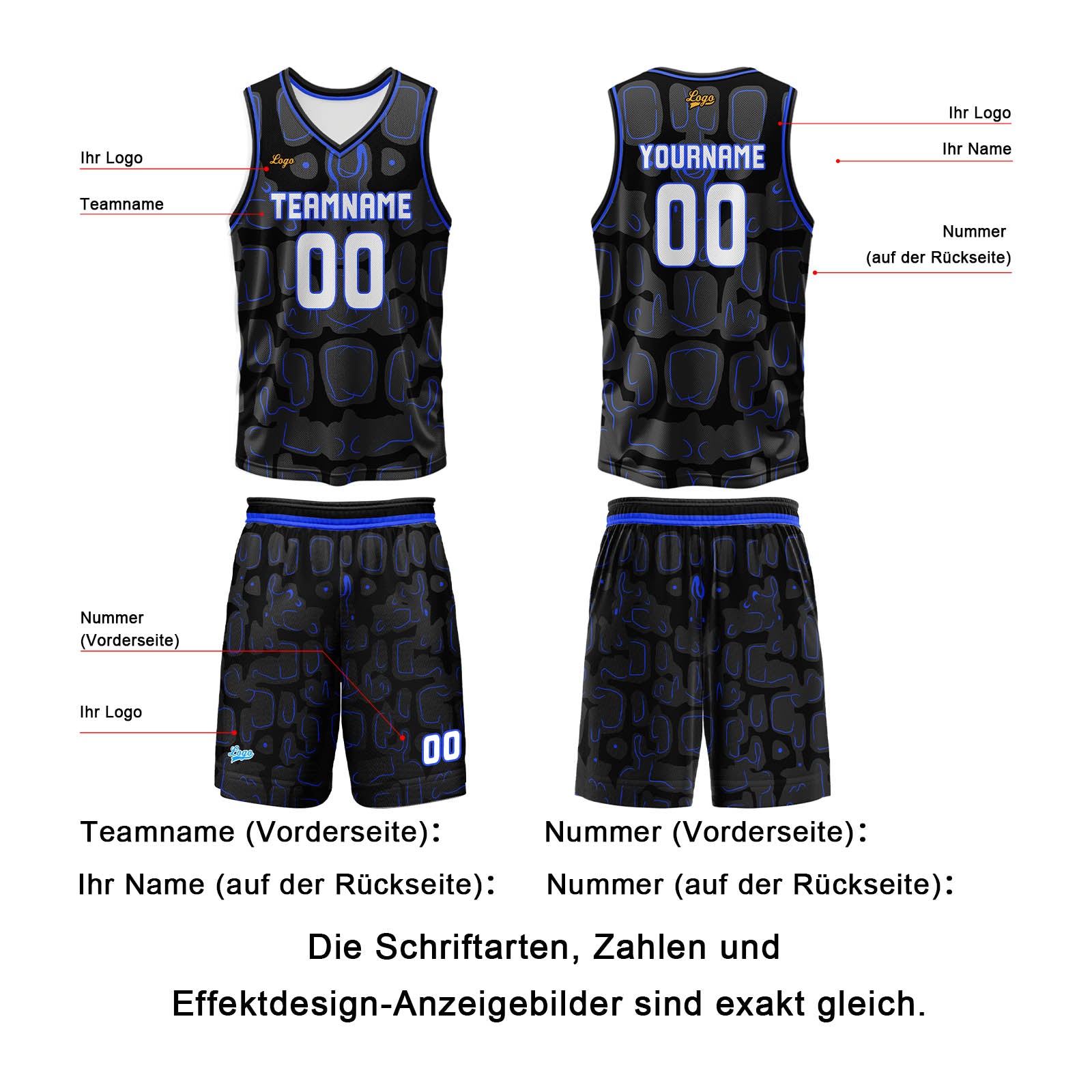 Benutzerdefinierter Schwarz Azurblau Basketball Jersey Uniform Anzug gedruckt Ihr Logo Name Nummer