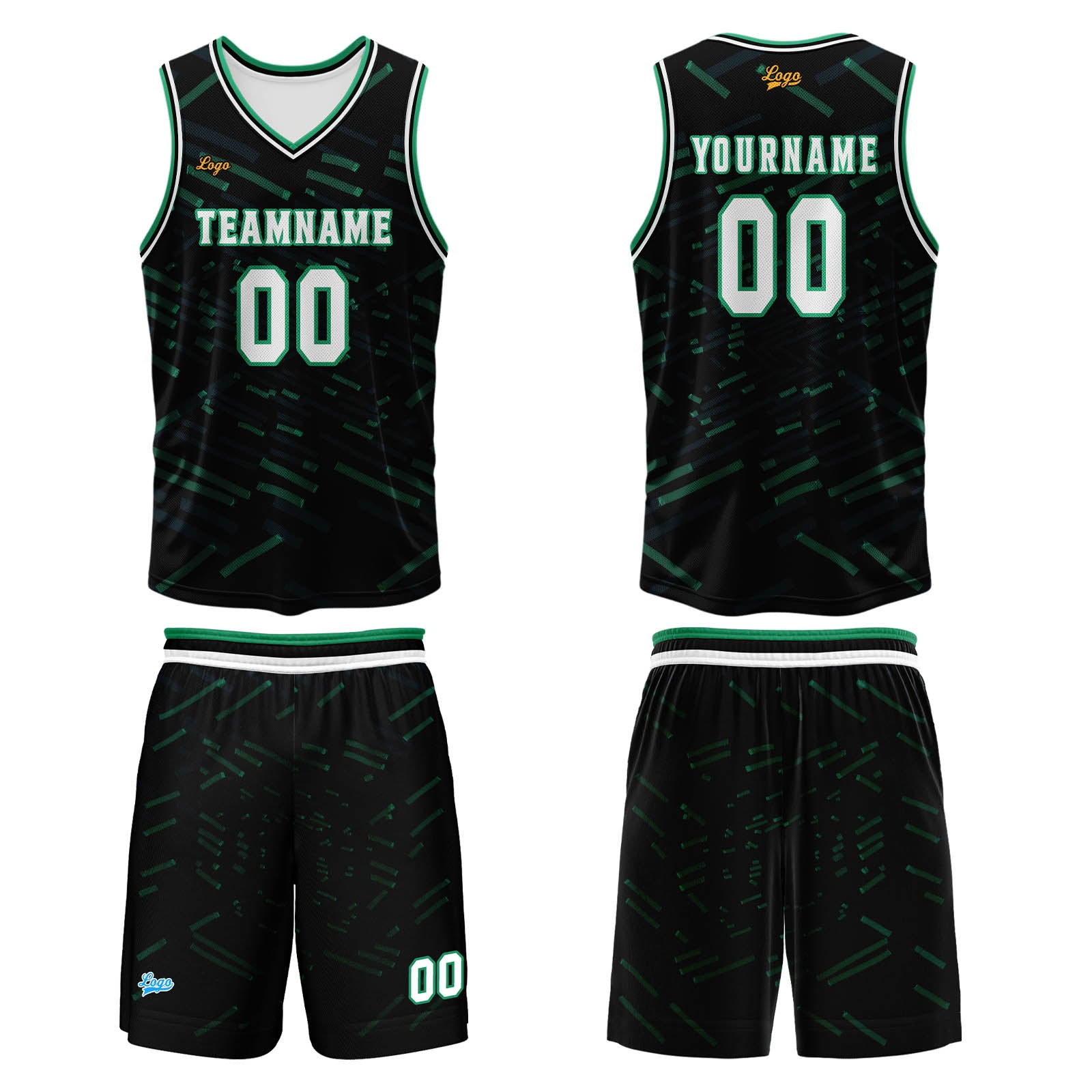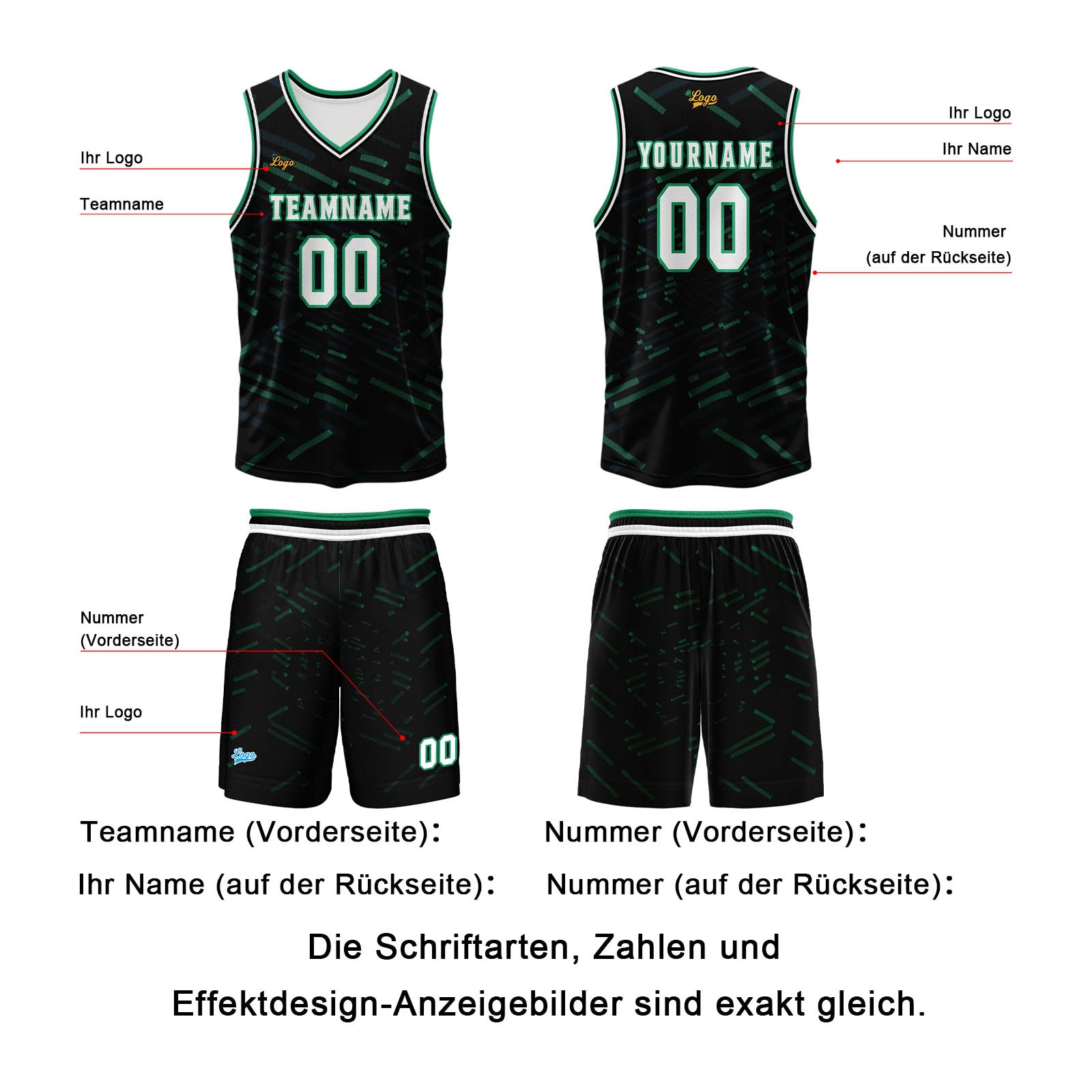 Benutzerdefinierter Schwarz Dunkelgrün Basketball Jersey Uniform Anzug gedruckt Ihr Logo Name Nummer