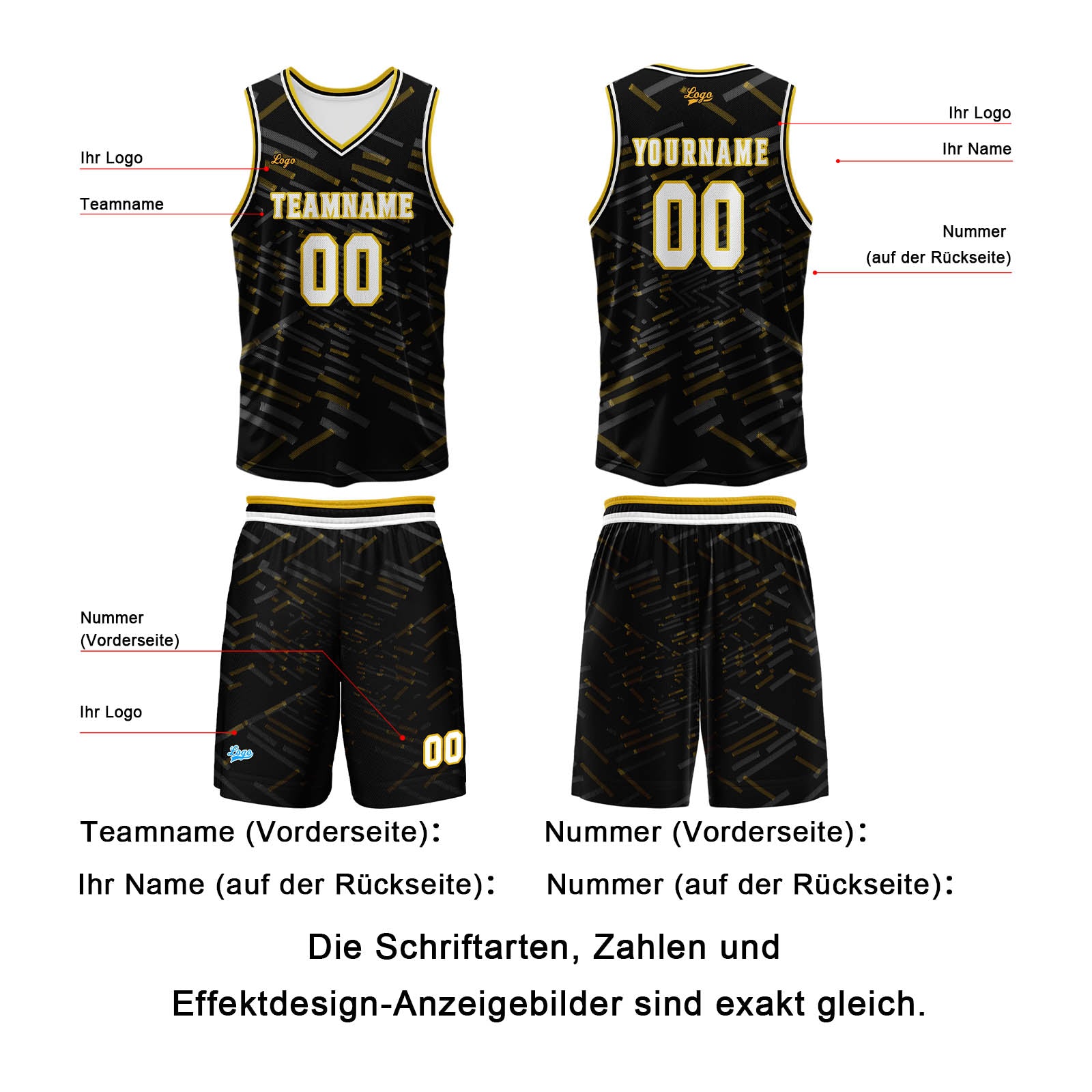 Benutzerdefinierter Schwarz-Gelb Basketball Jersey Uniform Anzug gedruckt Ihr Logo Name Nummer