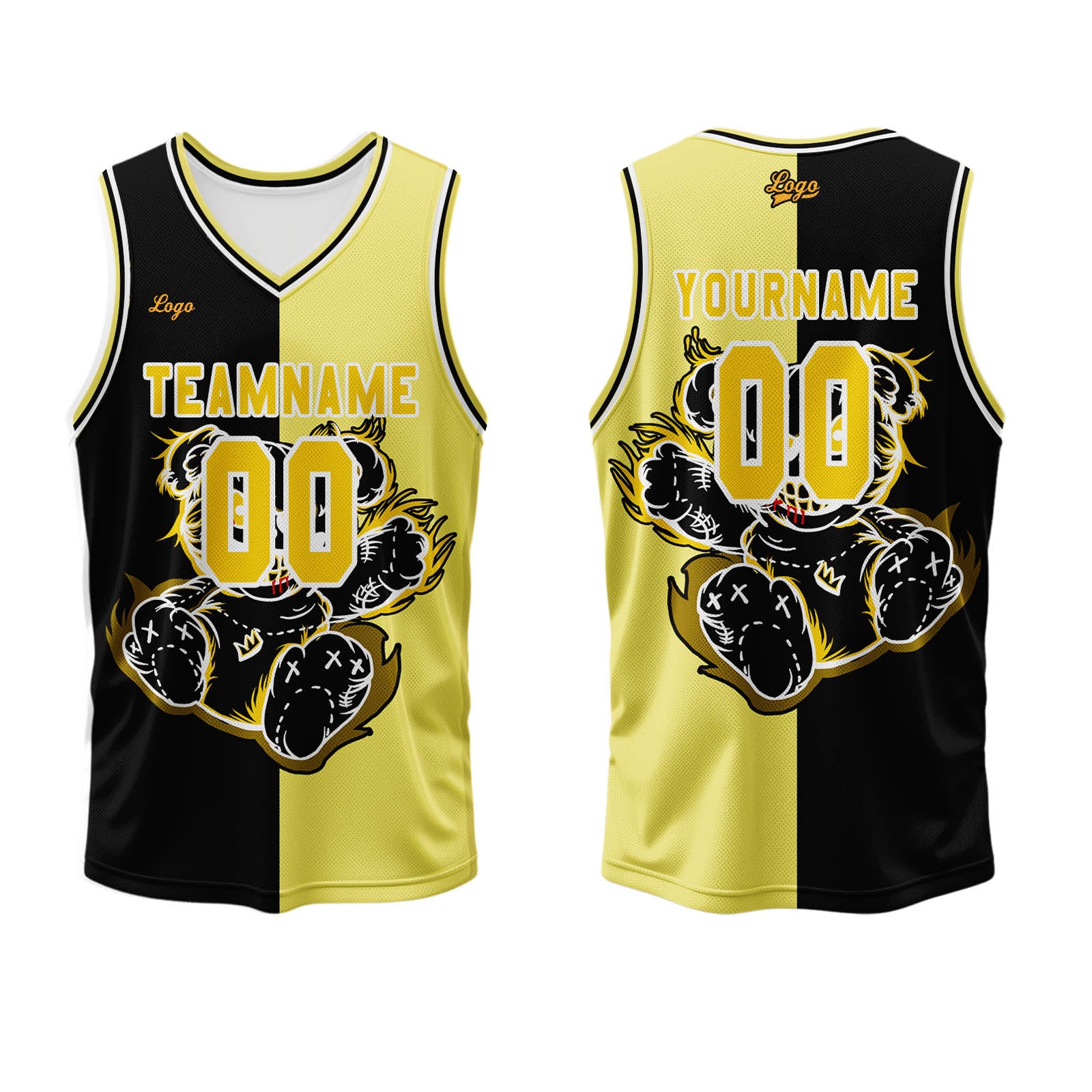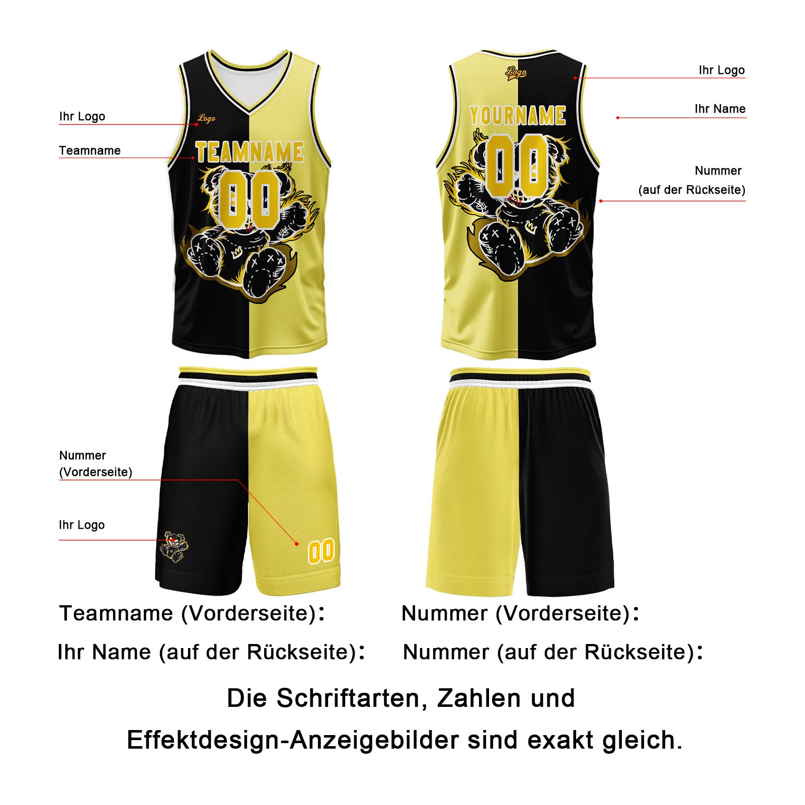 Benutzerdefinierter Schwarz Gelb Basketball Jersey Uniform Anzug gedruckt Ihr Logo Name Nummer