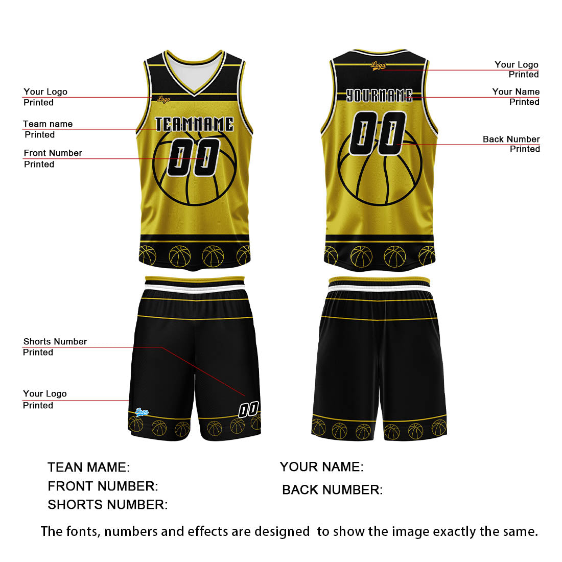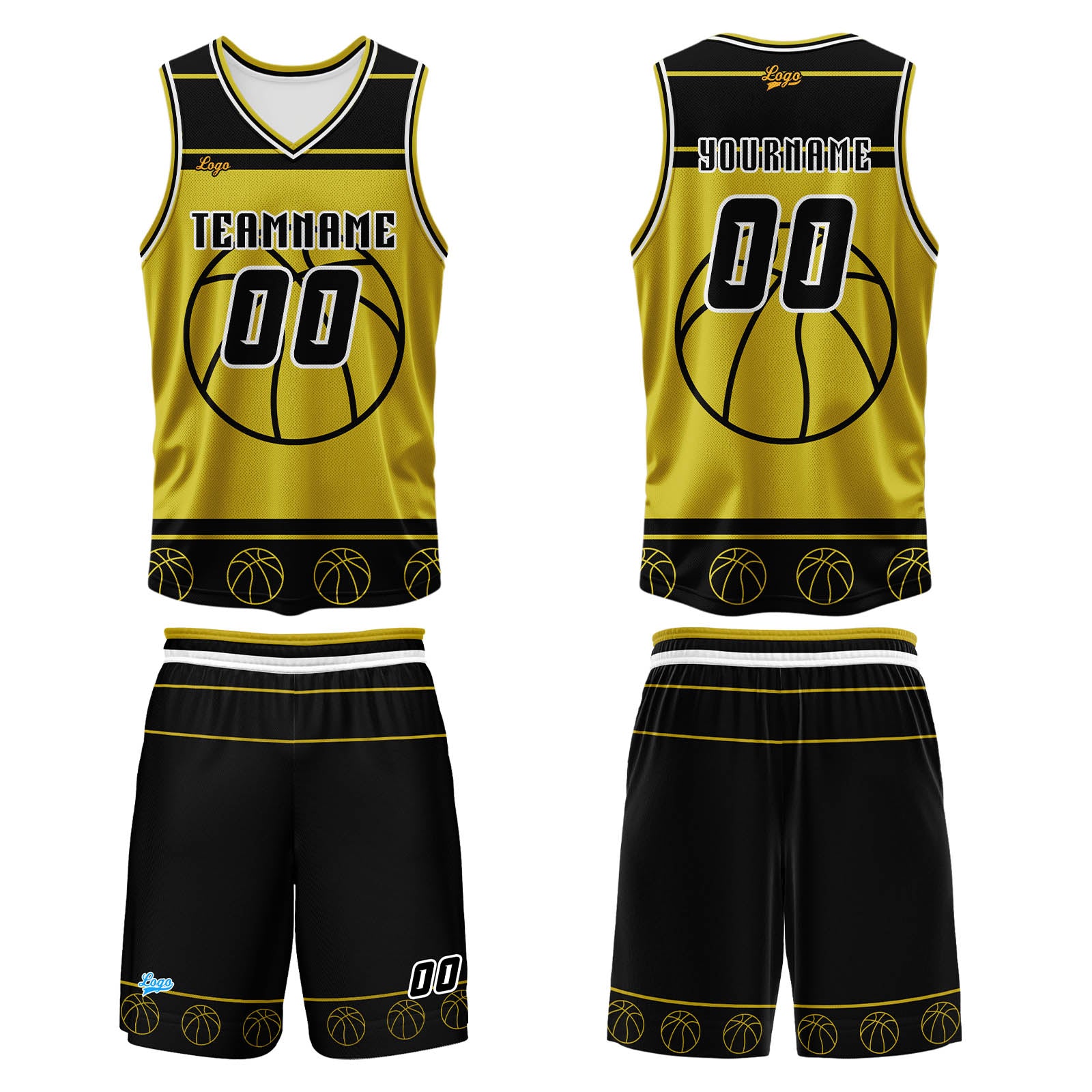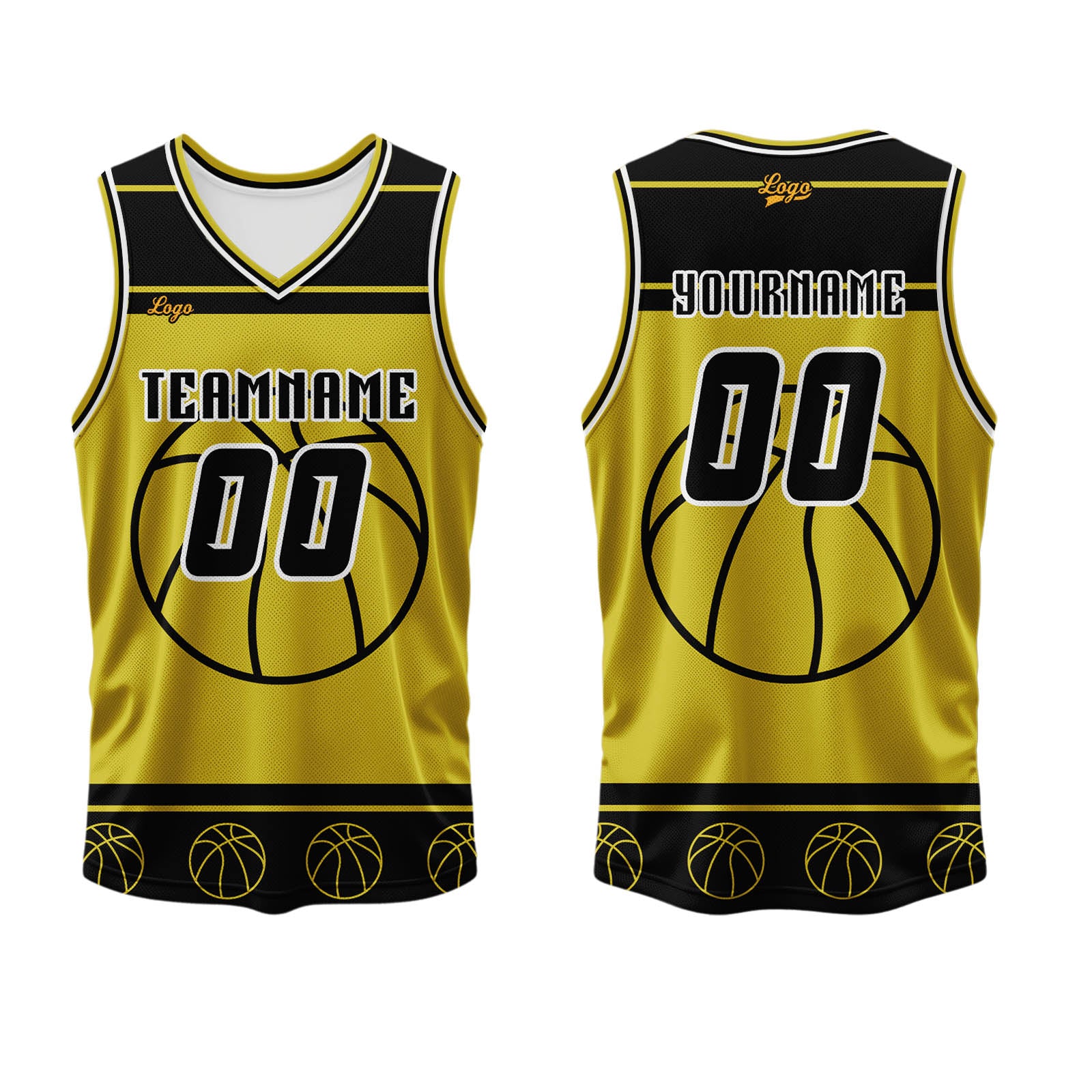Benutzerdefinierter Schwarz Gelb Basketball Jersey Uniform Anzug gedruckt Ihr Logo Name Nummer