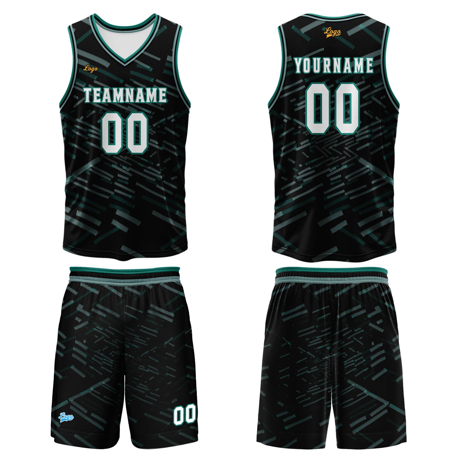 Benutzerdefinierter Schwarz Grasgrün Basketball Jersey Uniform Anzug gedruckt Ihr Logo Name Nummer