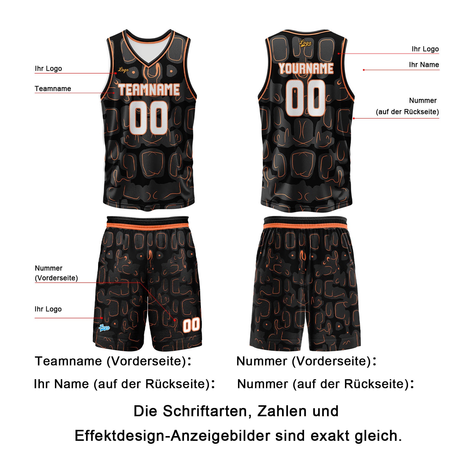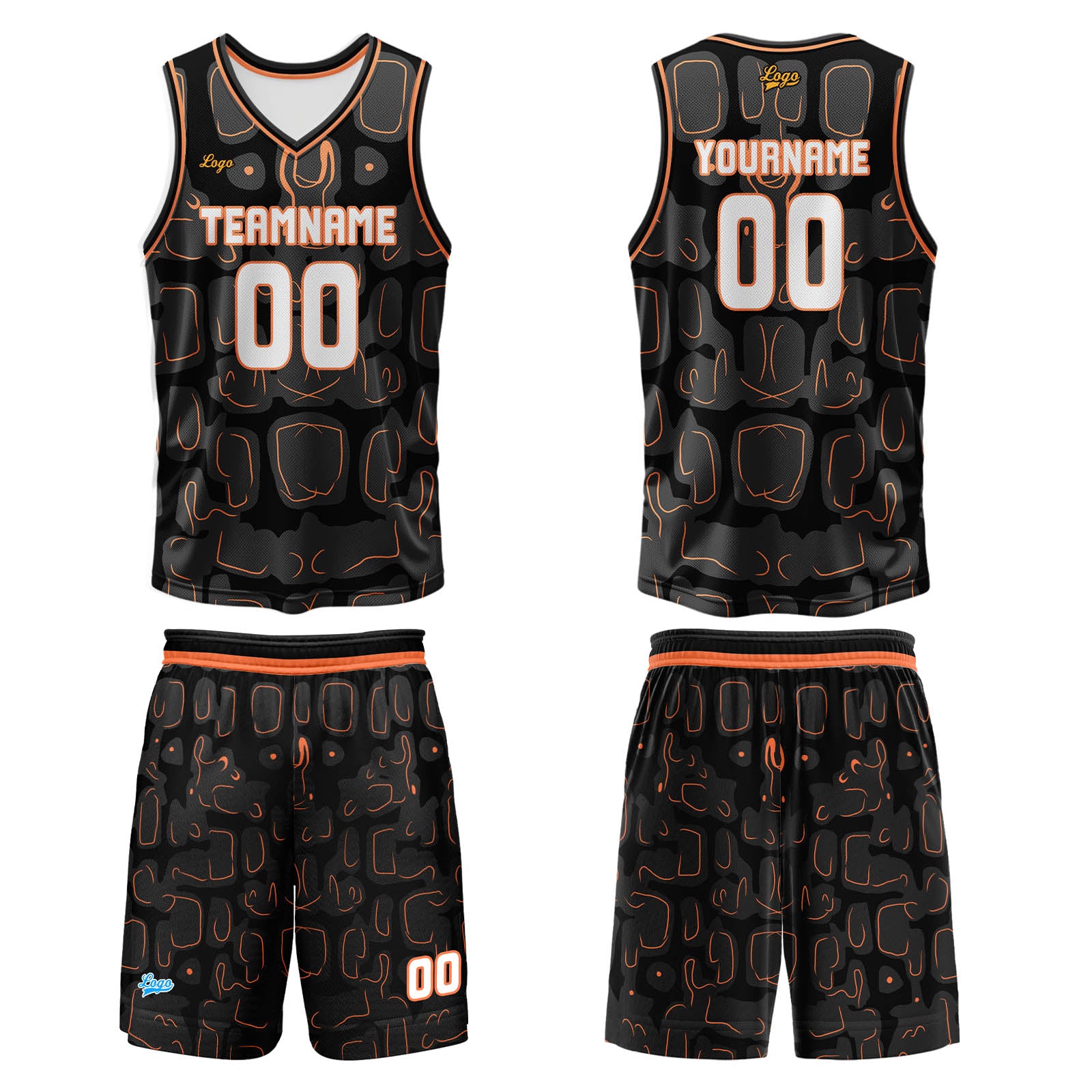 Benutzerdefinierter Schwarz orange Basketball Jersey Uniform Anzug gedruckt Ihr Logo Name Nummer