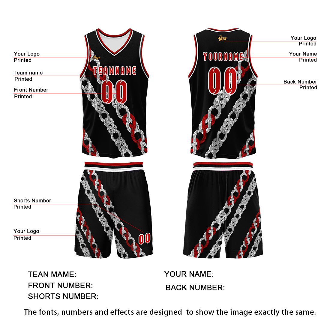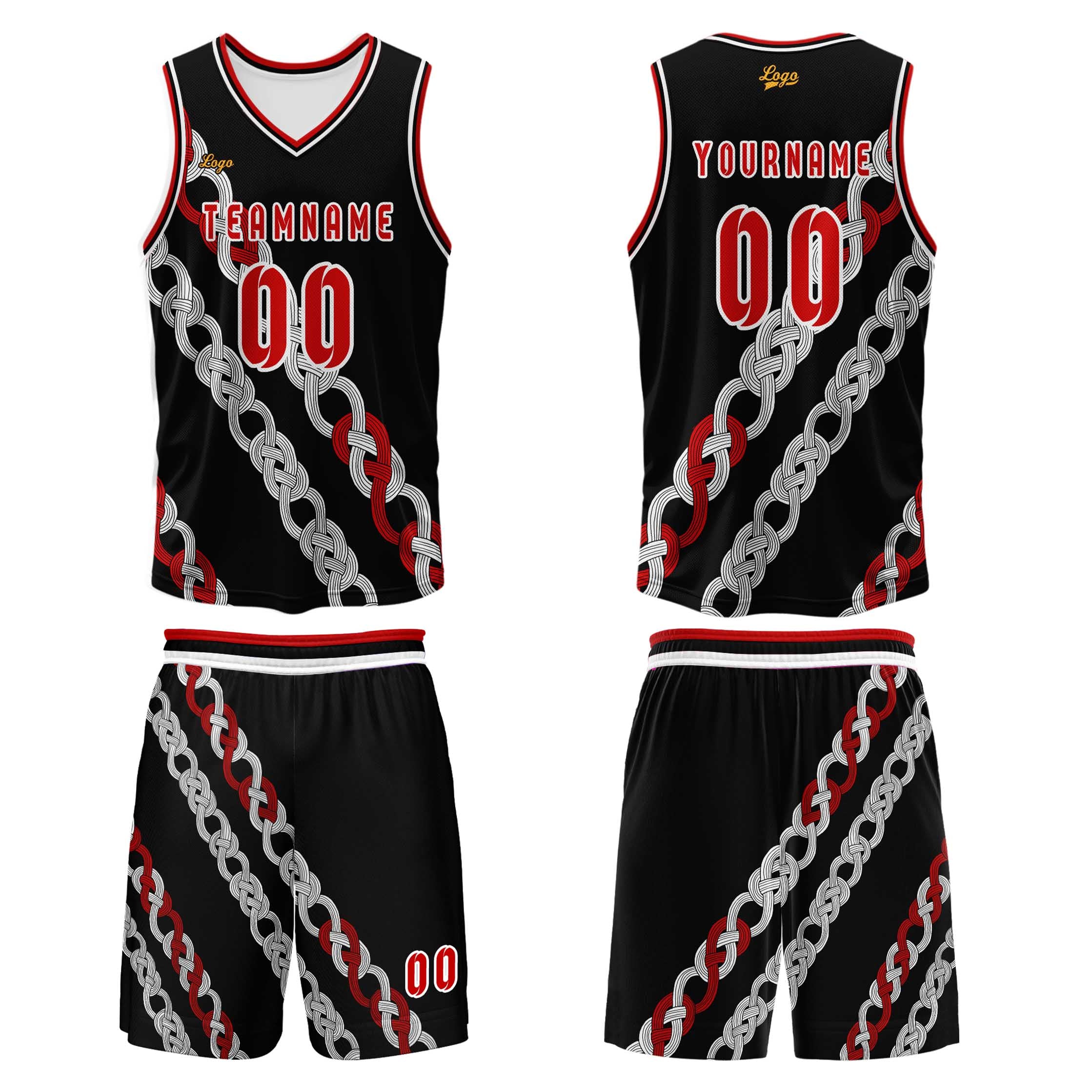 Benutzerdefinierter Schwarz Rot Basketball Jersey Uniform Anzug gedruckt Ihr Logo Name Nummer