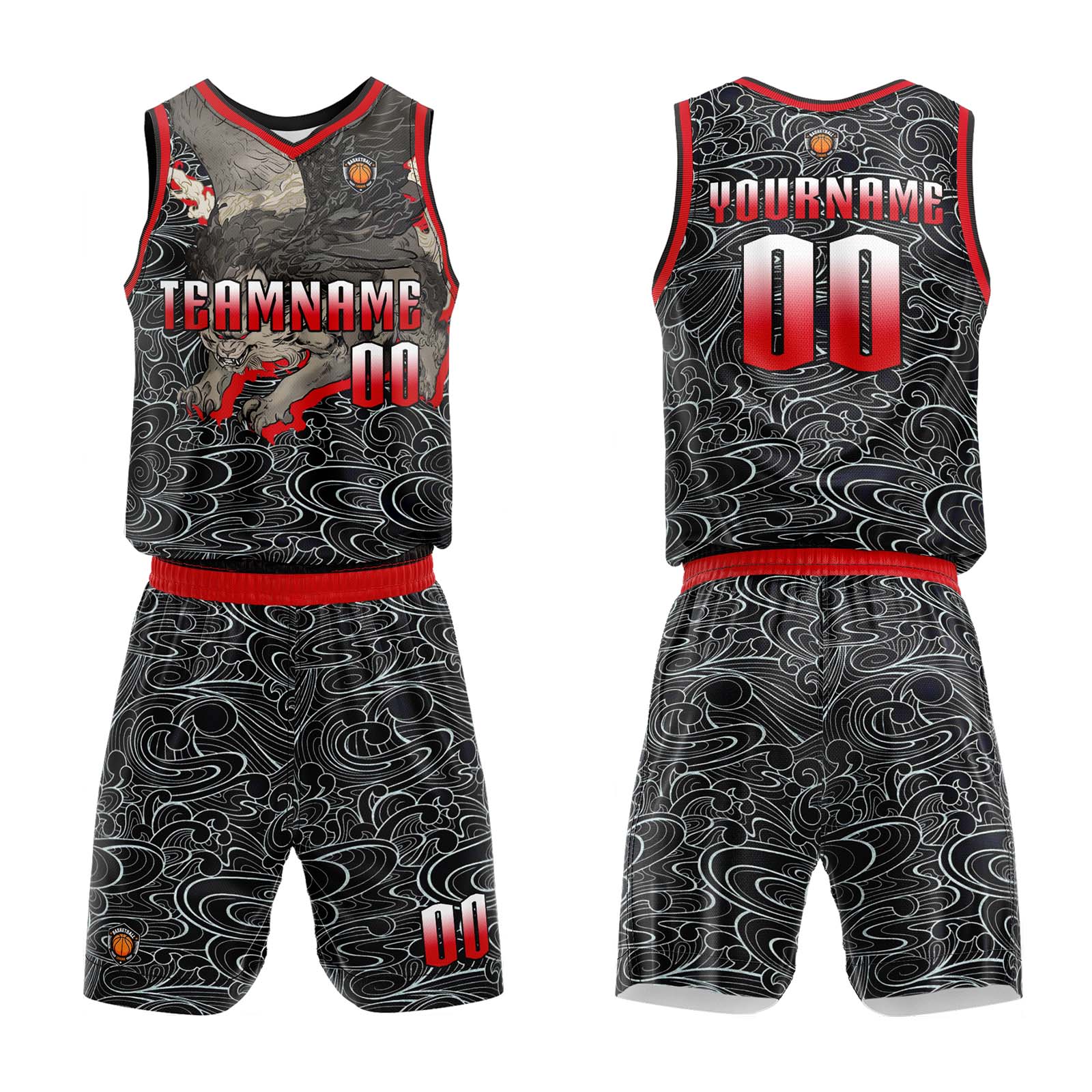 Benutzerdefinierter Schwarz Rot Basketball Jersey Uniform Anzug gedruckt Ihr Logo Name Nummer
