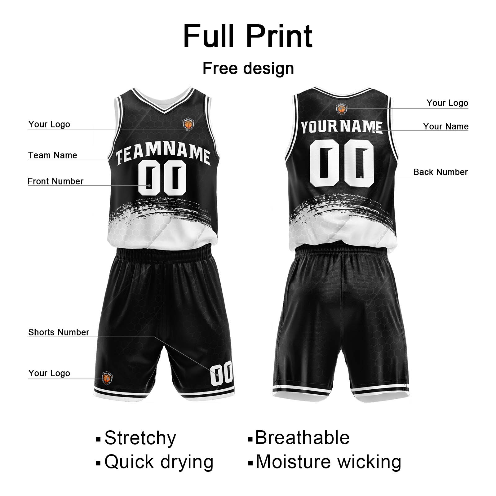 Benutzerdefinierter Schwarz Weiß Basketball Jersey Uniform Anzug gedruckt Ihr Logo Name Nummer